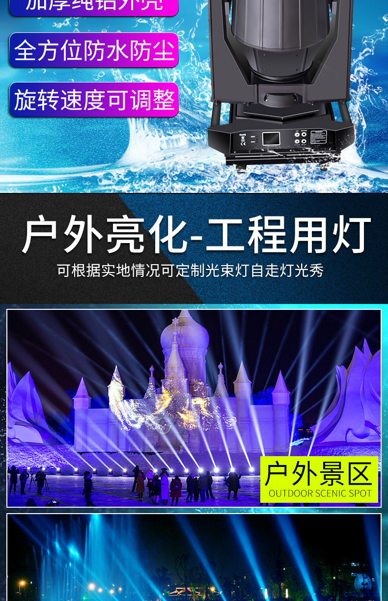350W al aire libre impermeable agitar la cabeza lámpara de haz de la ciudad monumentos arquitectónicos lugares escénicos de turismo cultural espectáculo de iluminación lámpara láser láser