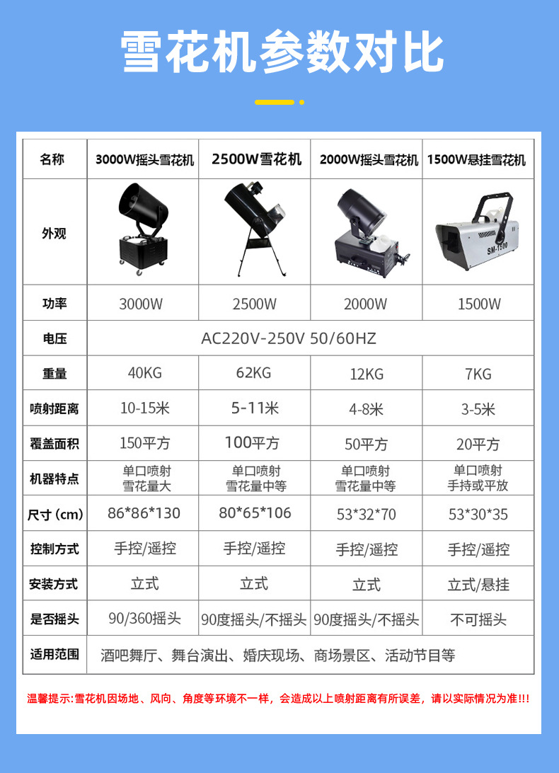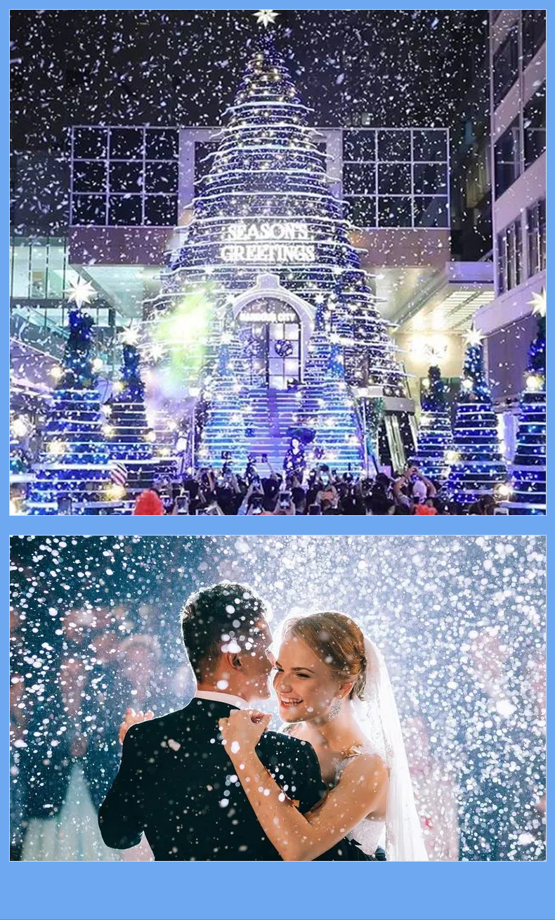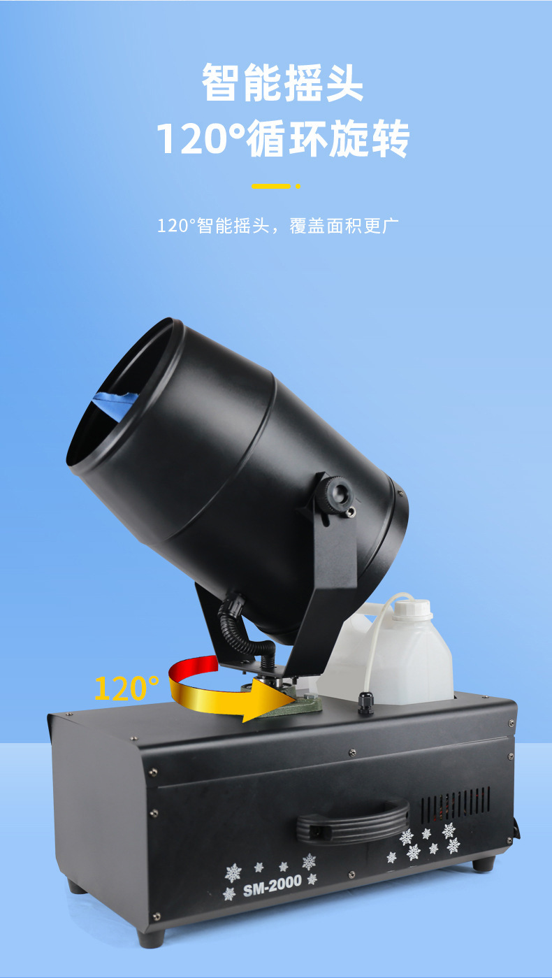 3000W gran sacudiendo la cabeza máquina de copo de nieve etapa de alta potencia fabricante de nieve alquiler máquina de nieve de Navidad pulverizador de nieve