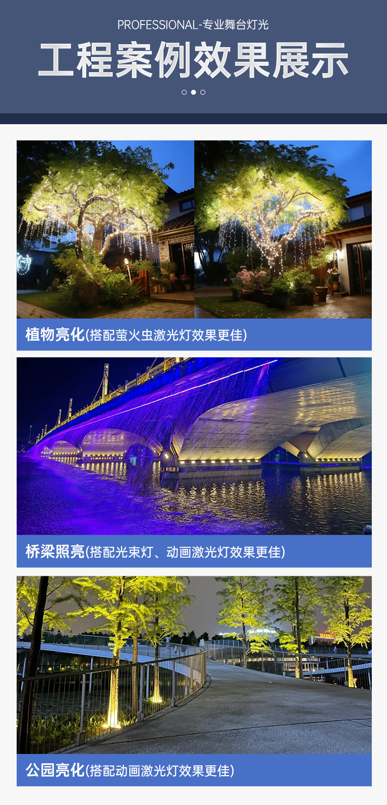 | Potencia de la fuente de luz | 24 lámparas de proyección impermeables de cuatro en uno, 24 lámparas de proyección impermeables de cinco en uno y 24 lámparas de proyección impermeables de seis en uno |