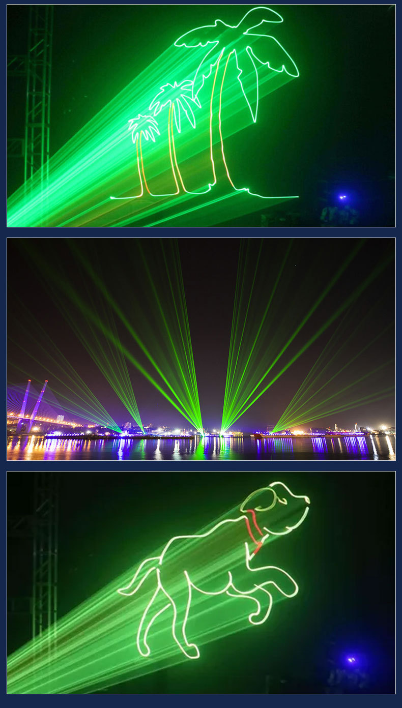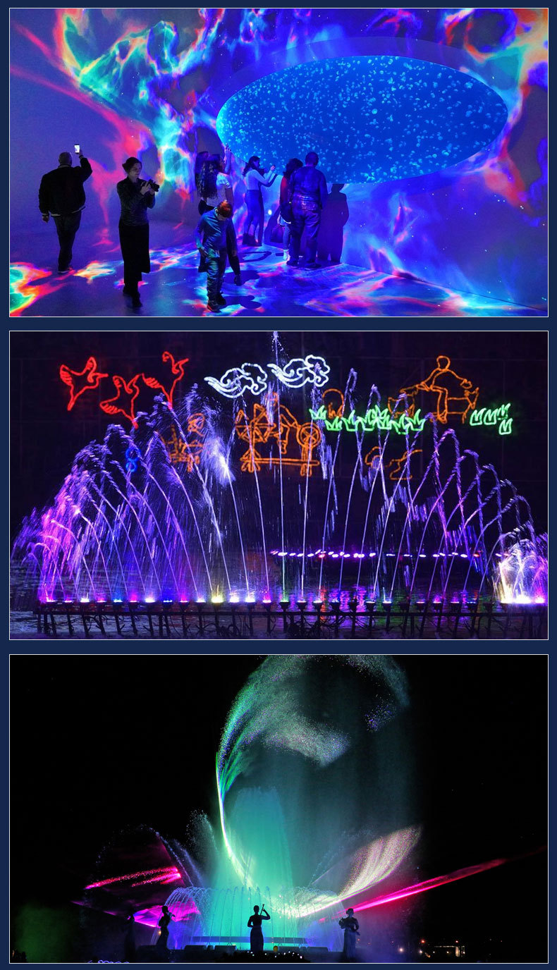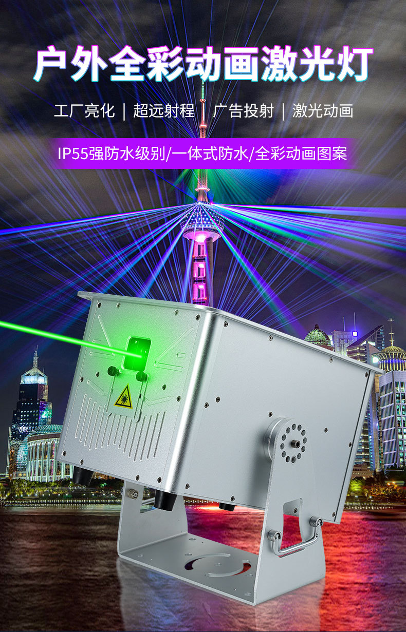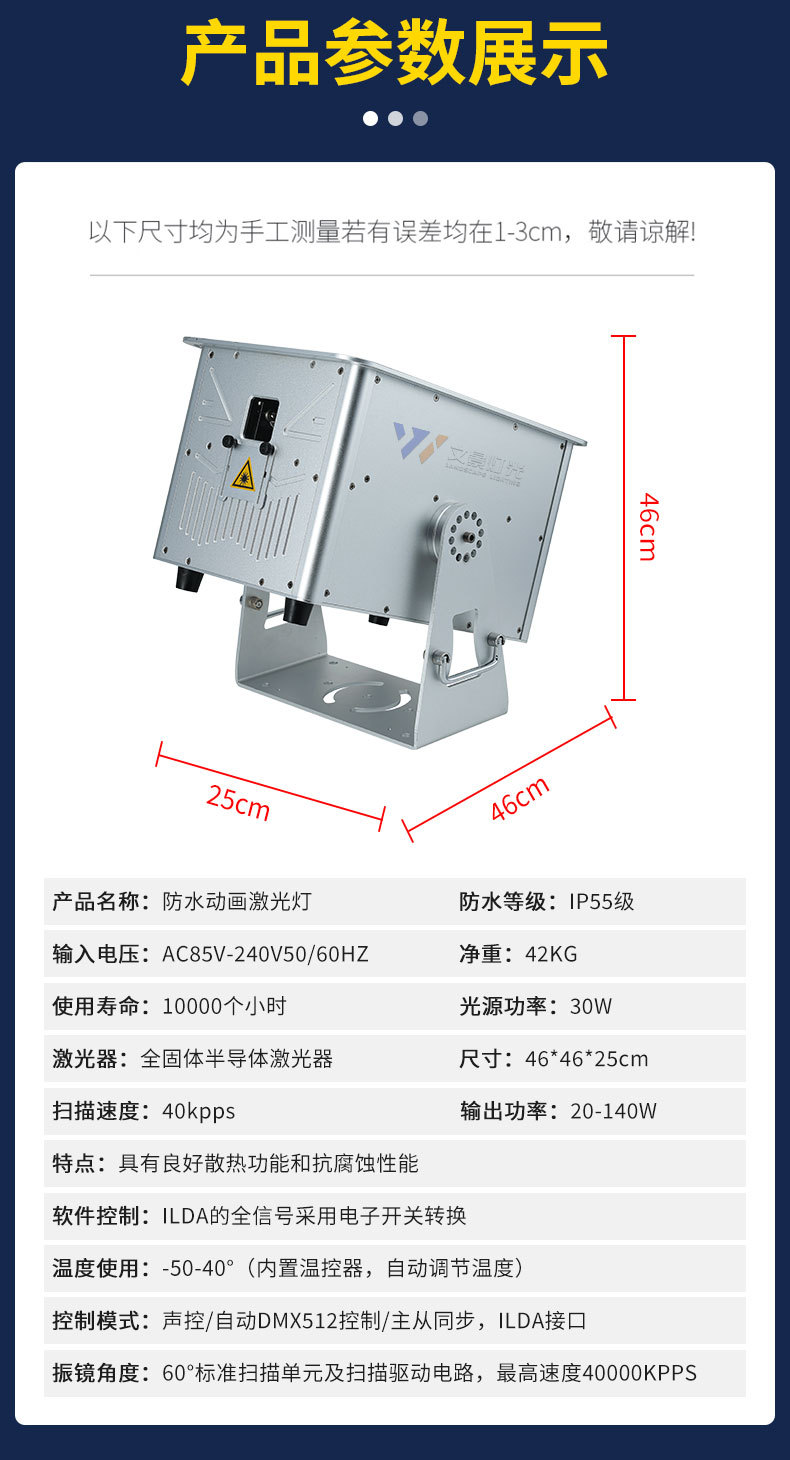 Animación a prueba de agua al aire libre a todo color lámpara láser punto escénico punto de referencia edificio techo fuente de montaña cortina de agua patrón lámpara láser