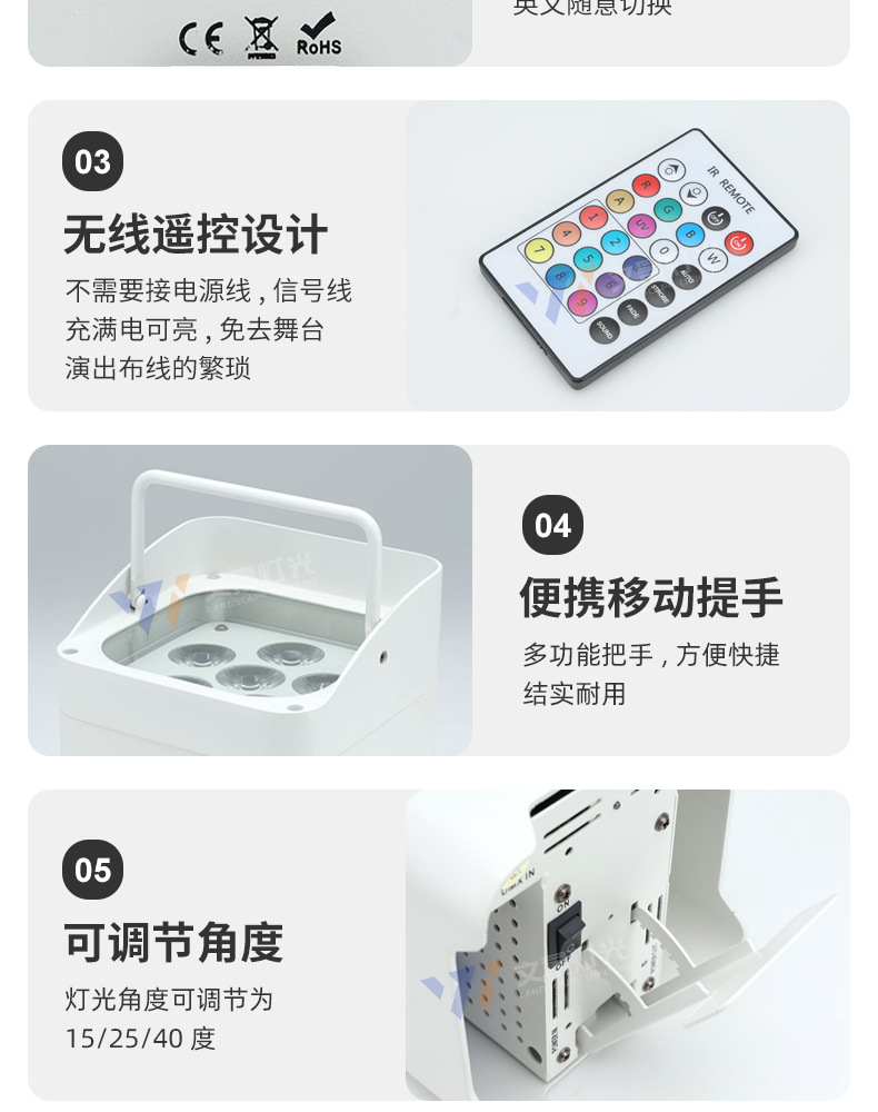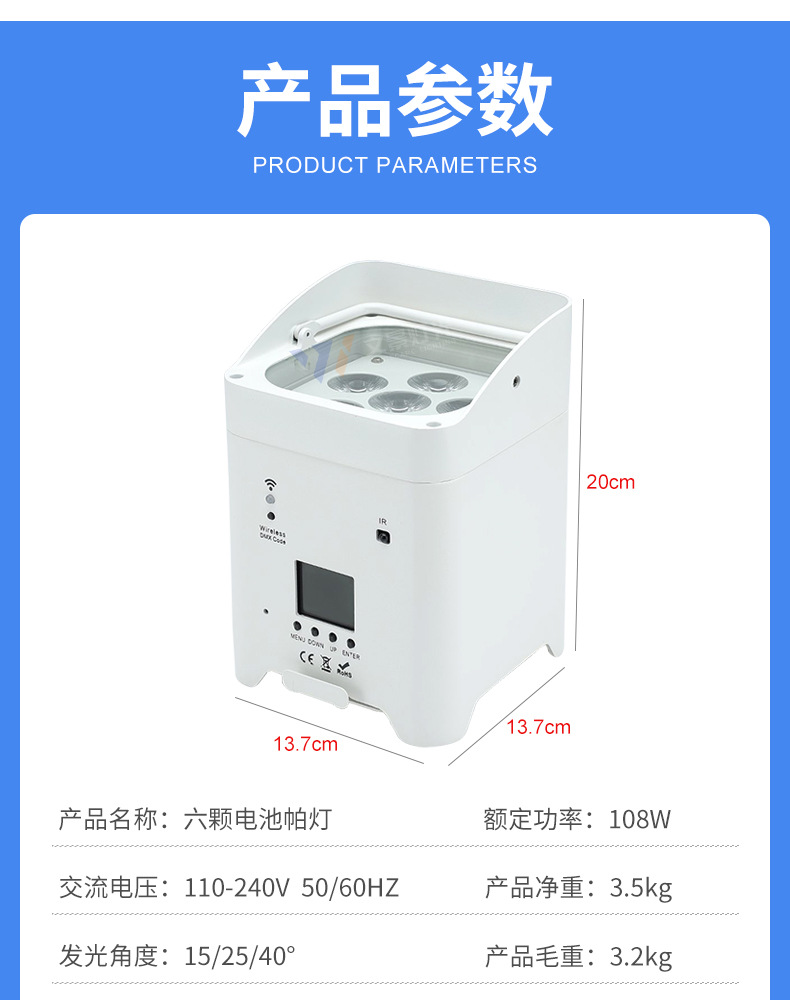 Transfronterizo dedicado inalámbrico 6 18W batería par luz LED recargable WiFi control remoto par luz boda teñido luz al por mayor