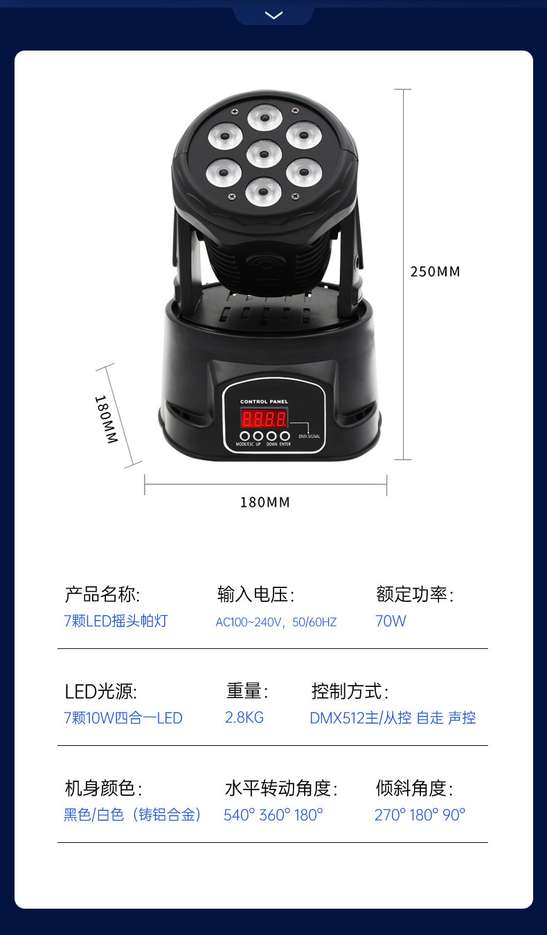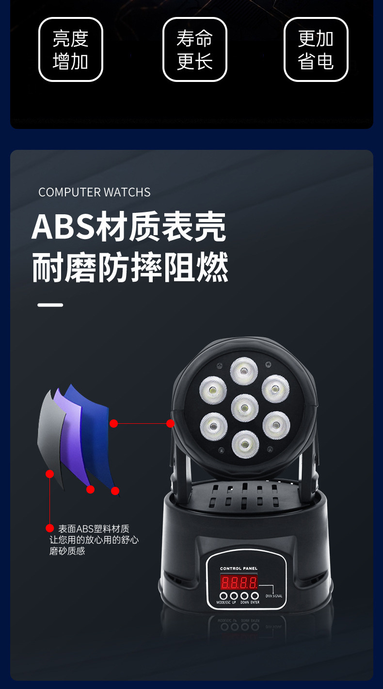 7 luces de cabeza móvil par