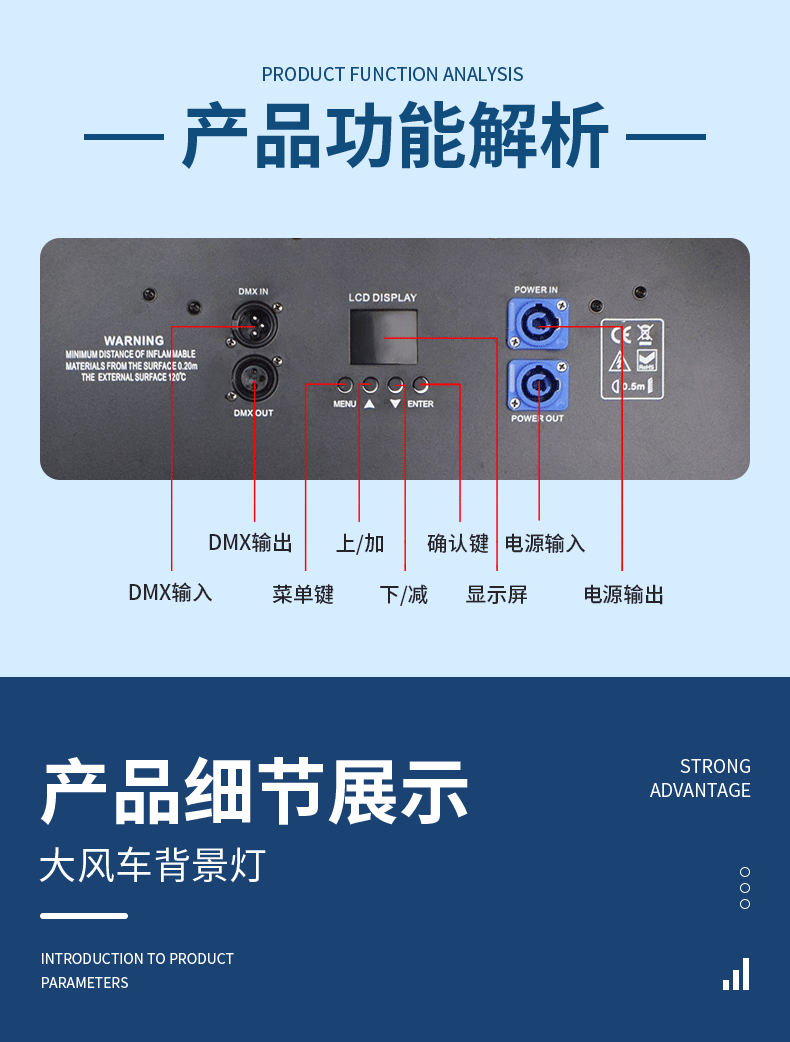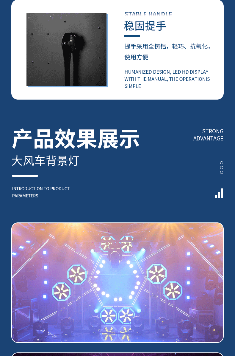 Luz de escenario LED matriz de luz de fondo haz de luz rendimiento barra de la boda molino de viento luz giratoria tira de luz teñida