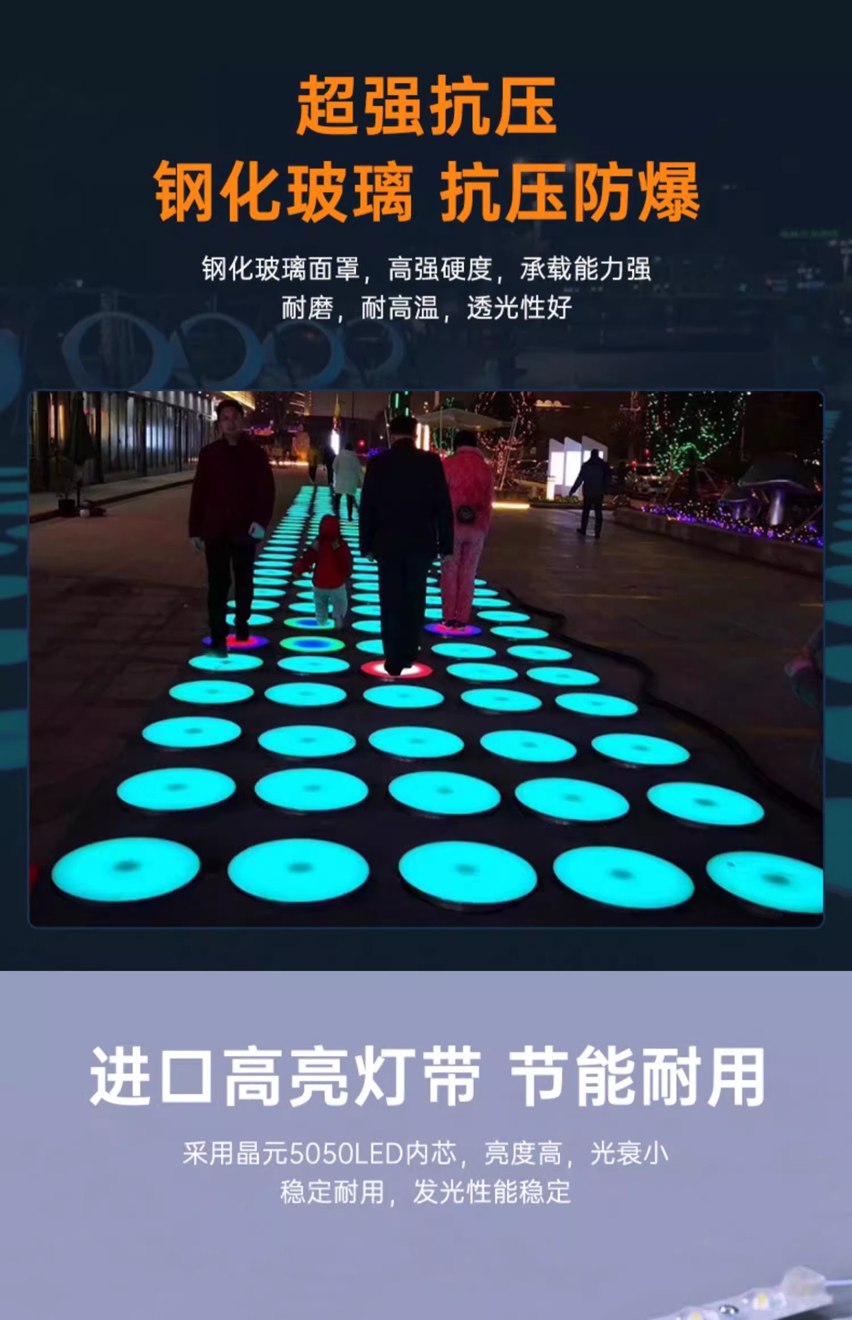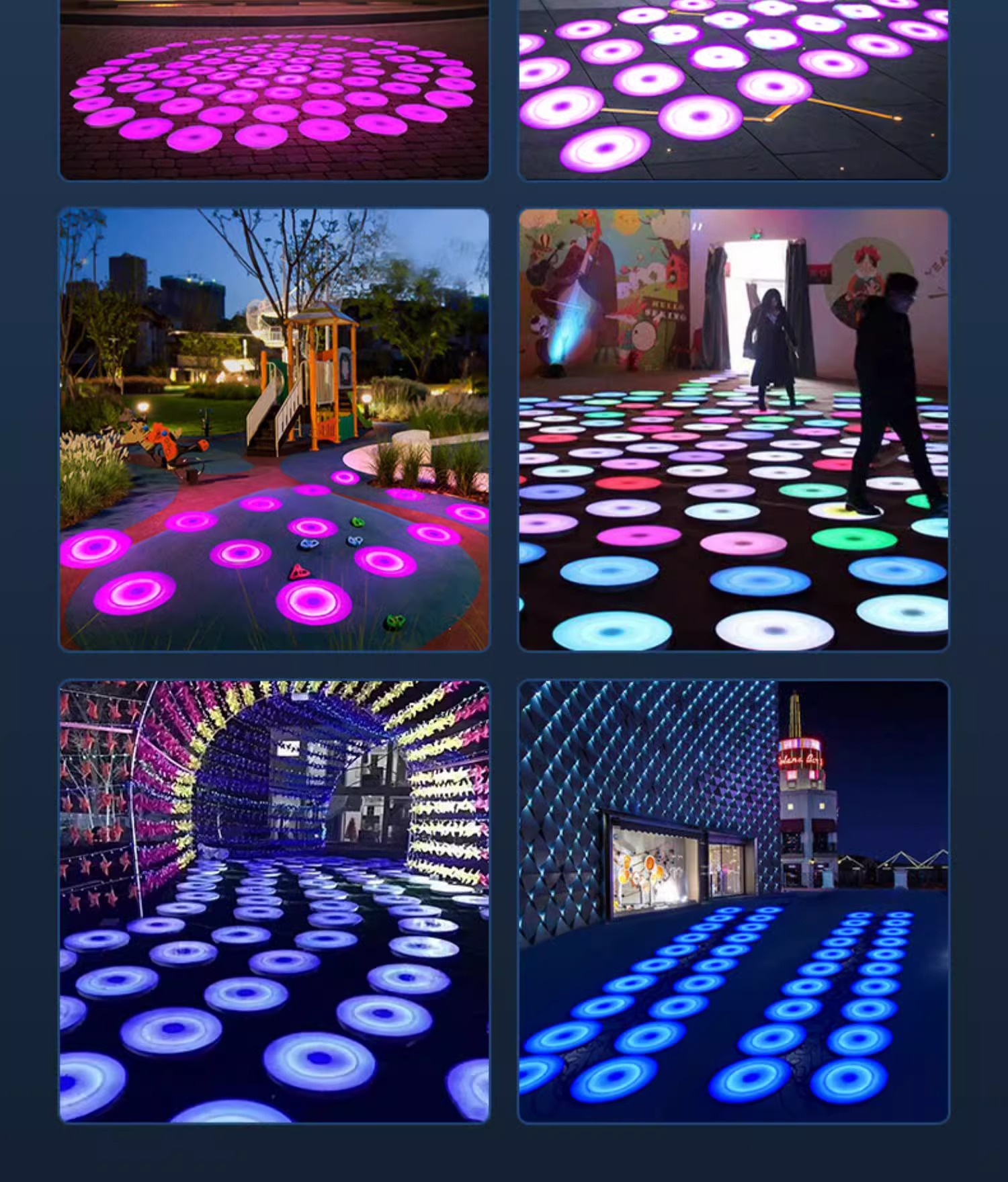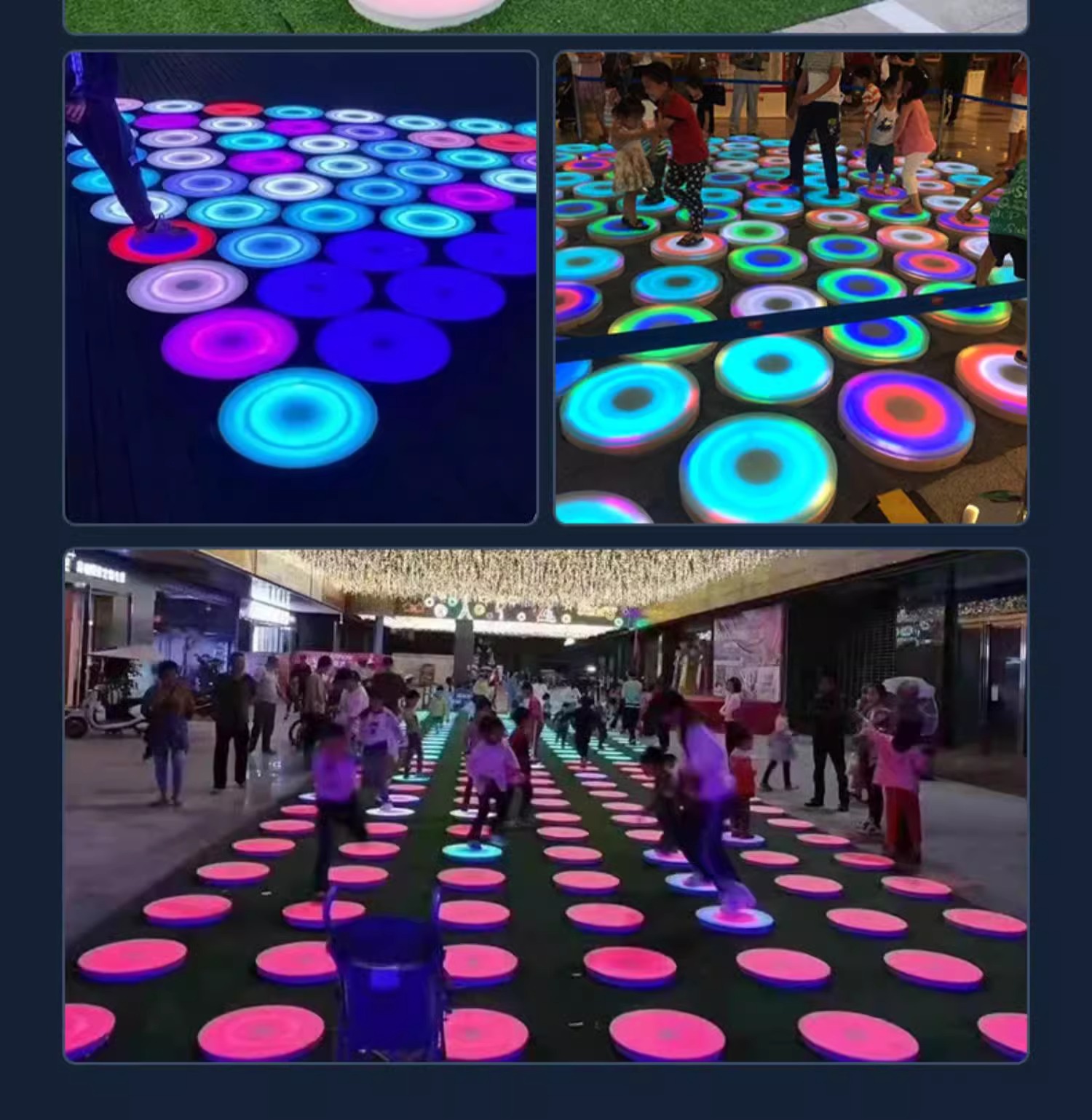 LED luz redonda inducción piso azulejo luz música interactiva piso luz pedal color cambiante ronda decoración impermeable al aire libre