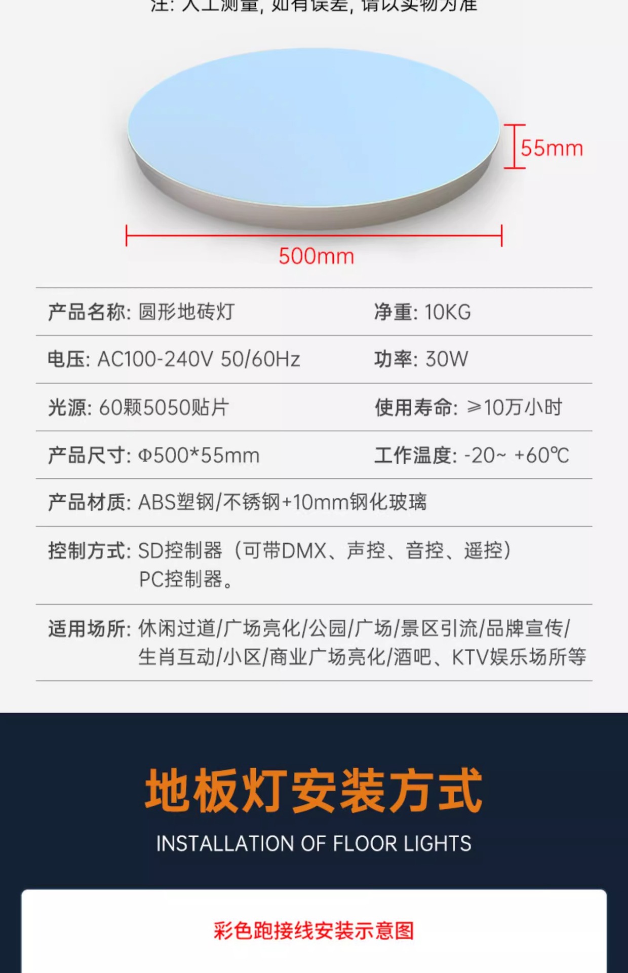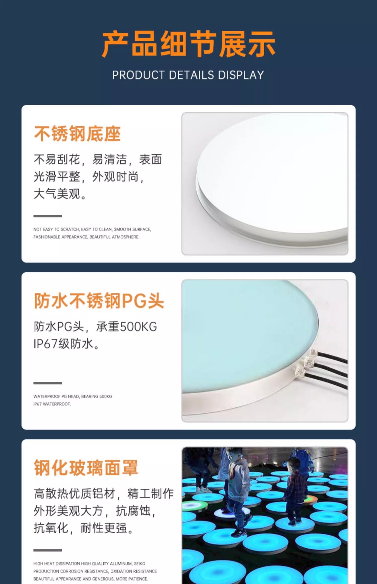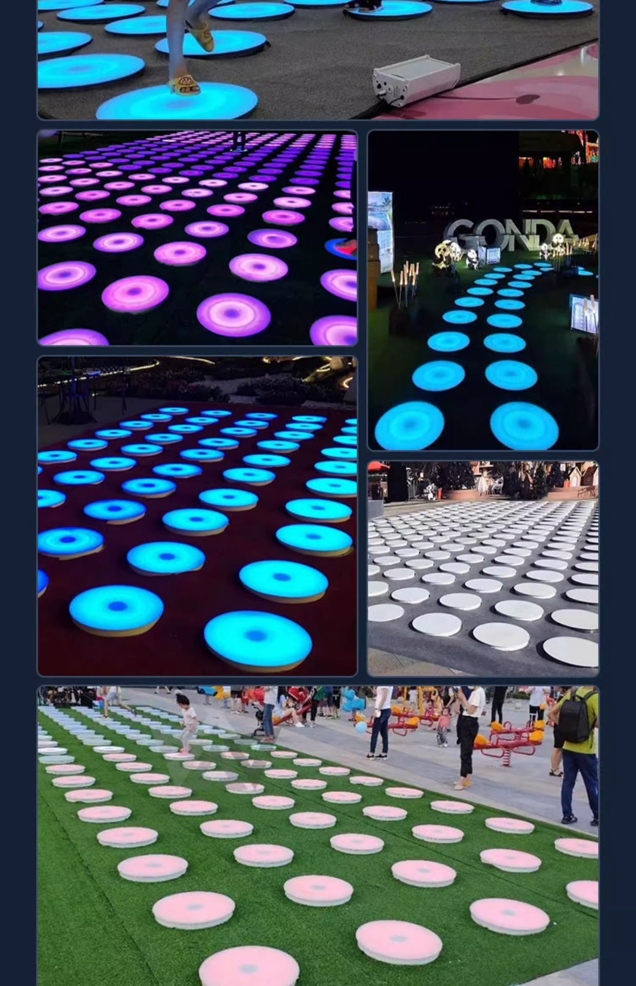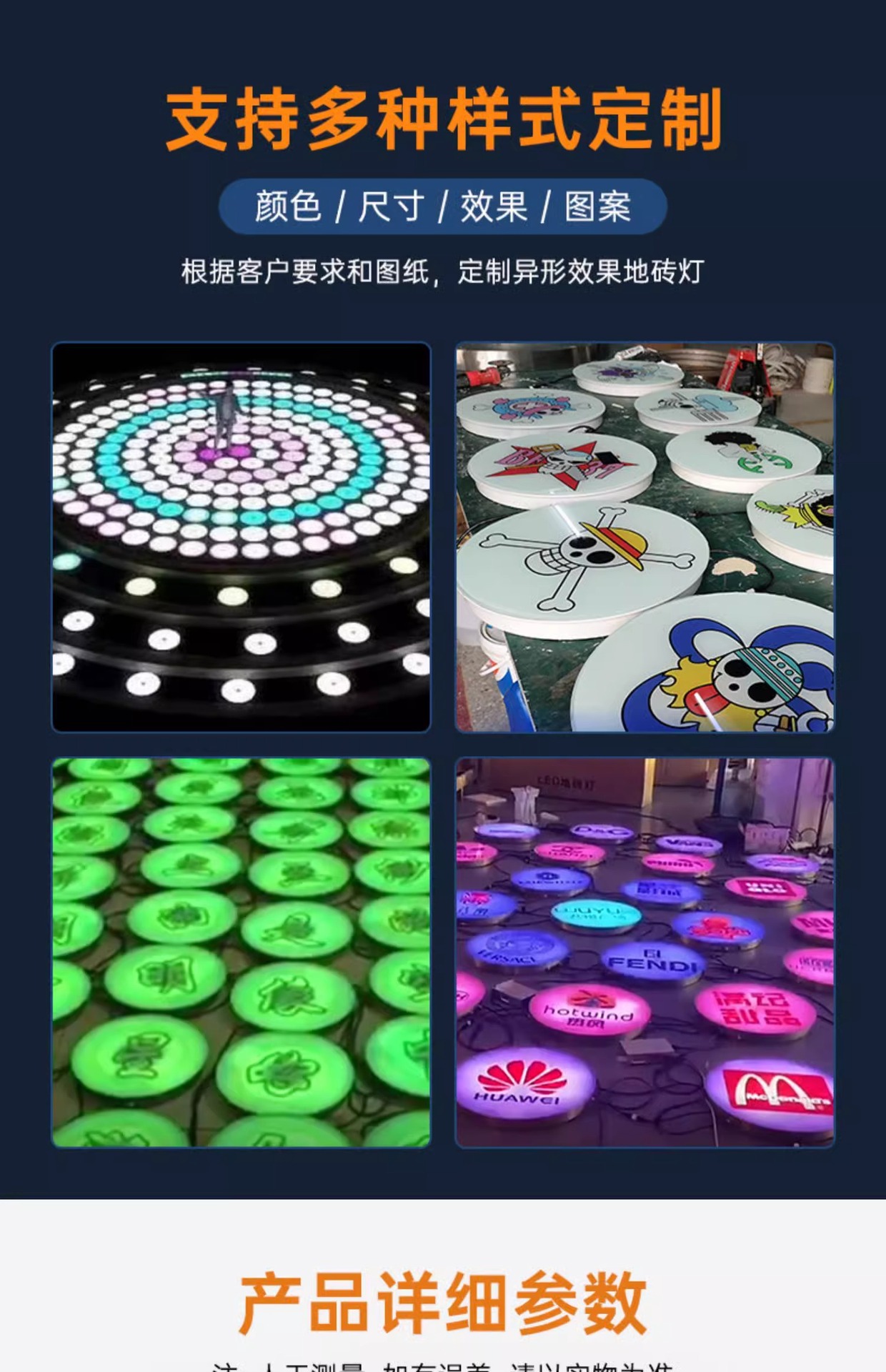 LED luz redonda inducción piso azulejo luz música interactiva piso luz pedal color cambiante ronda decoración impermeable al aire libre