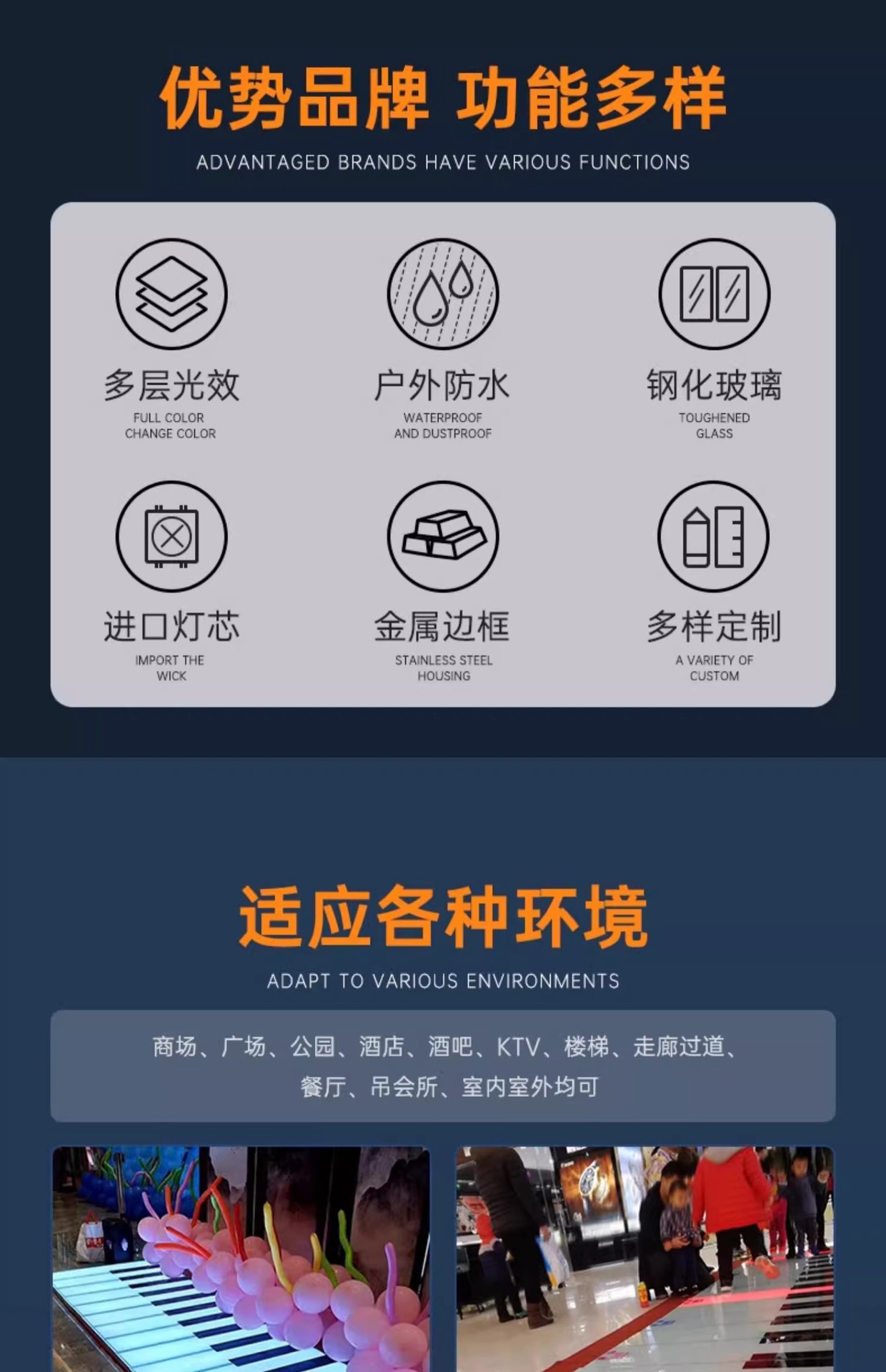 Jump Square celosía LED piano piso ladrillo luz Internet celebridad escaleras música inducción interactiva al aire libre pedal luz del piso