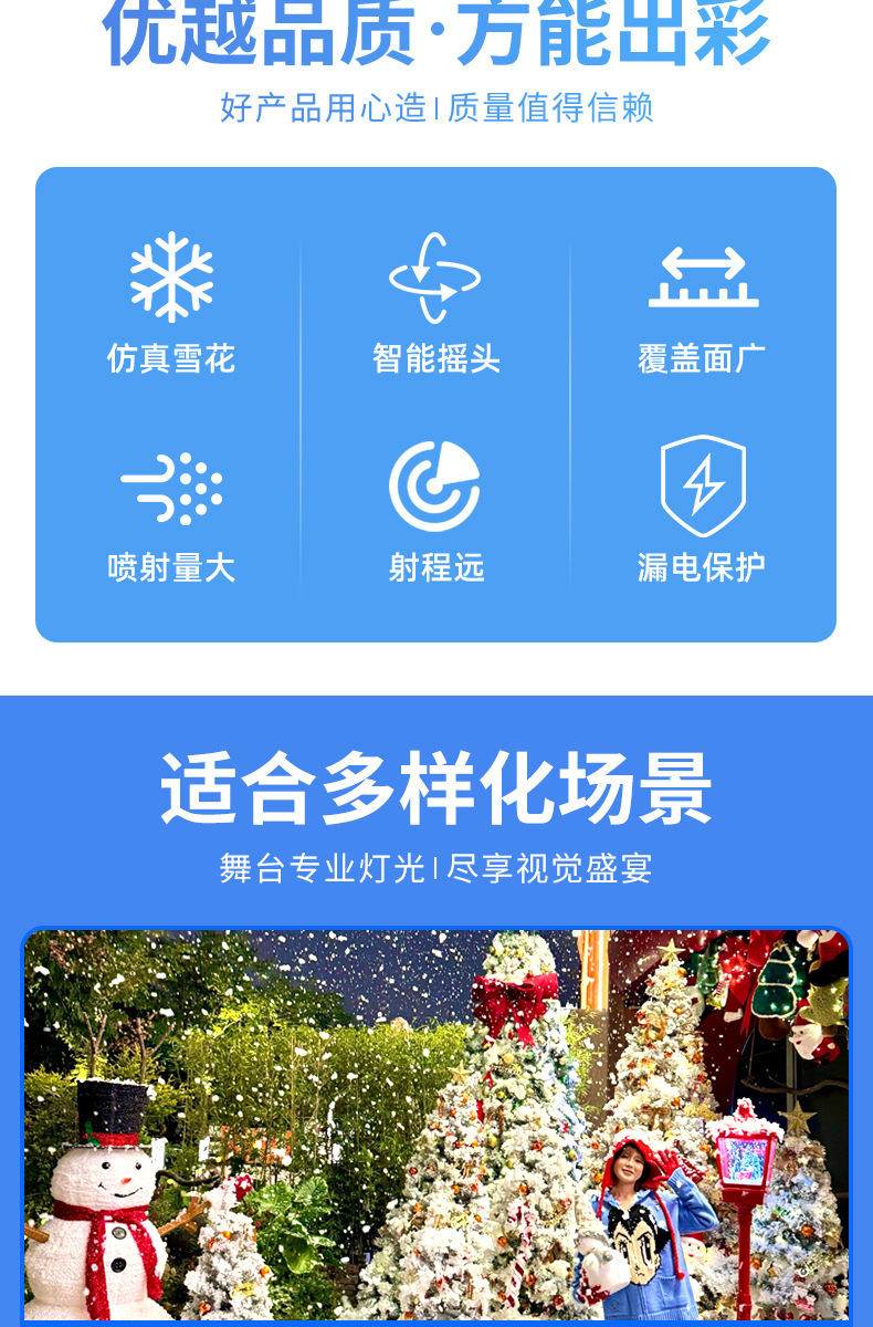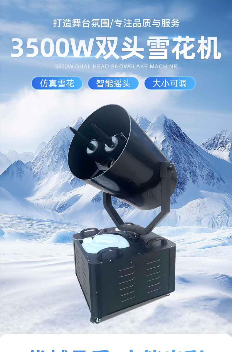 3500W gran máquina de copo de nieve escenario rociador de nieve simulación Navidad boda máquina de nieve artificial de doble cabeza al aire libre