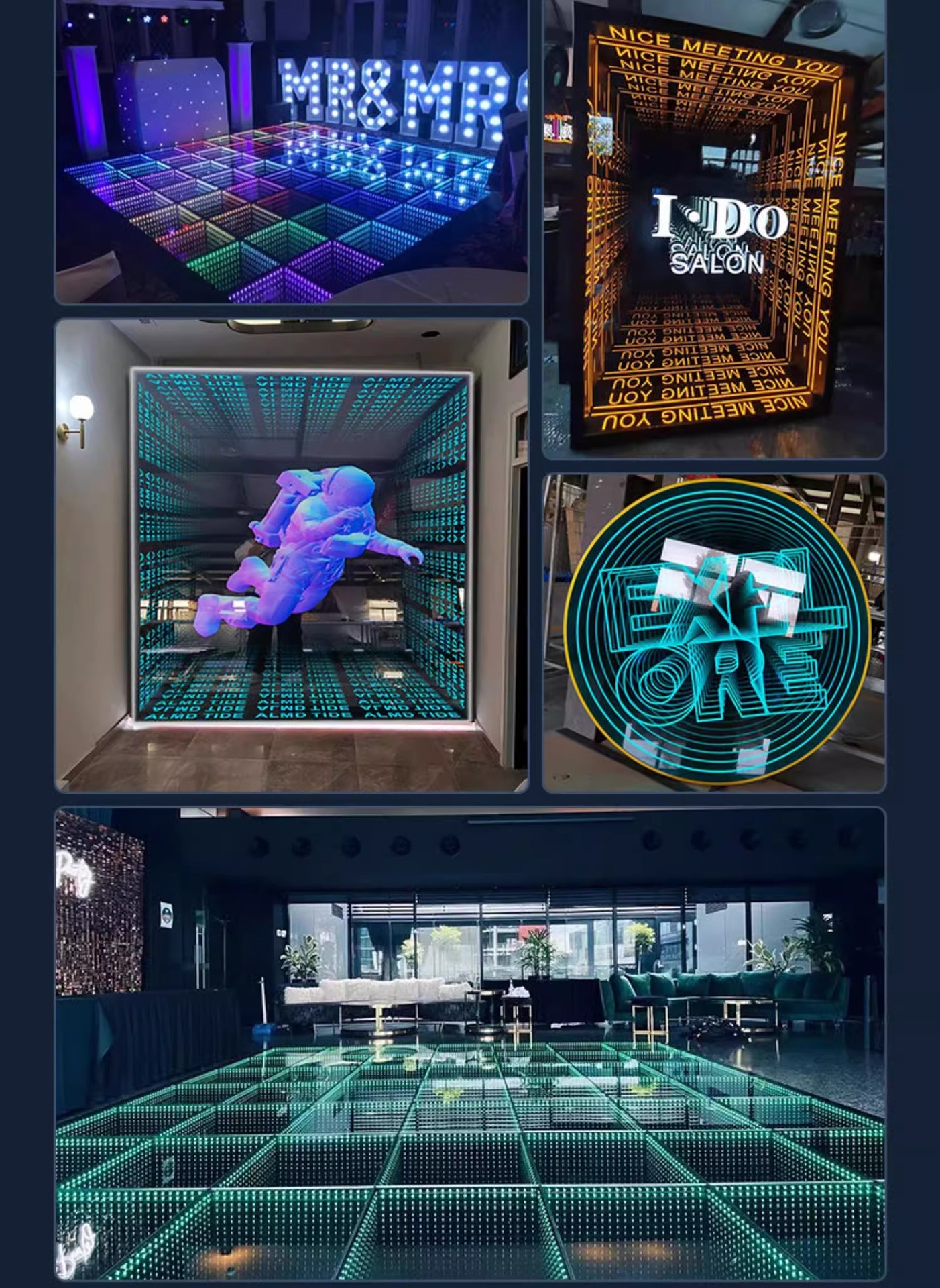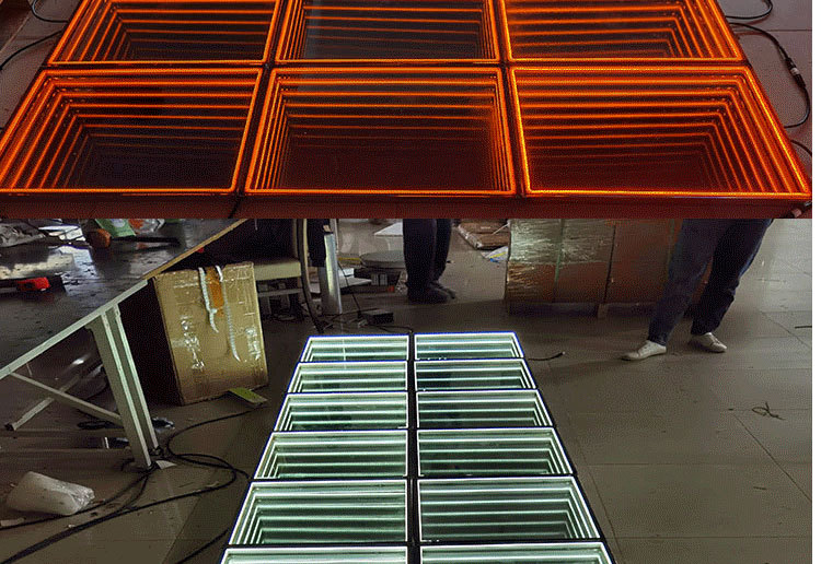 LED multi-capa abismo espejo piso ladrillo luz de fondo de la pared neón carácter luminoso escenario KTV bar Live Studio 3D piso