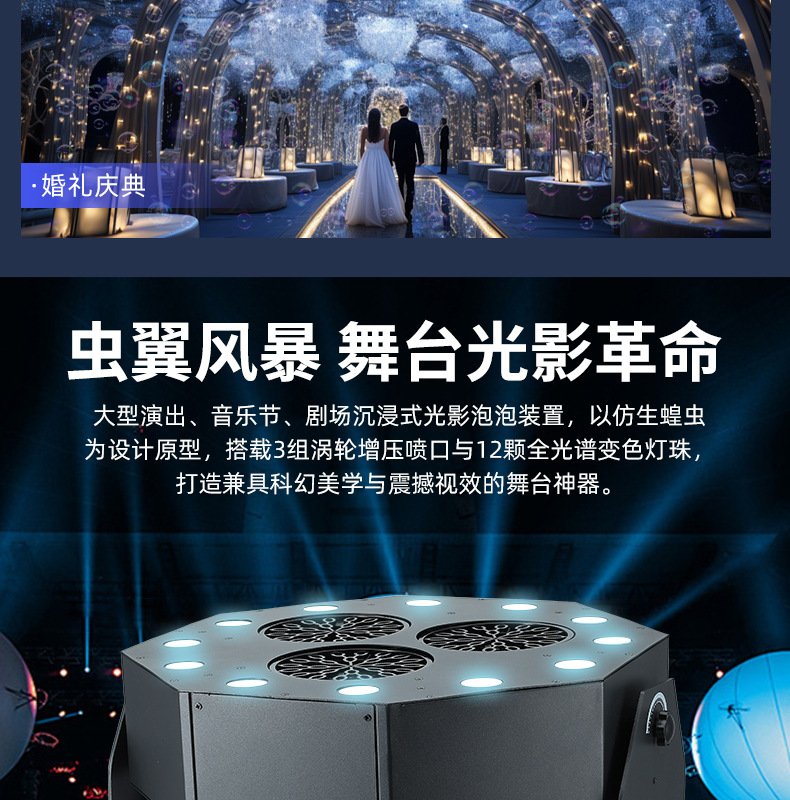 Actuación escénica tormenta máquina de burbujas actuación de boda máquina de efectos especiales LED evento al aire libre concierto máquina de burbujas comercial