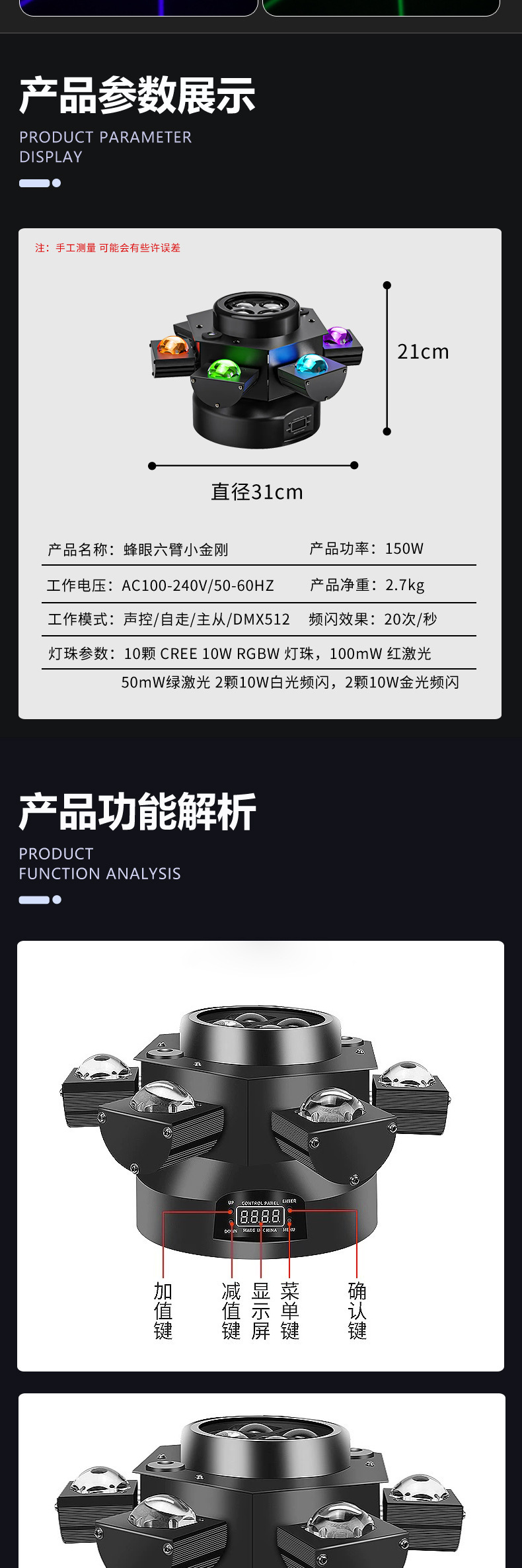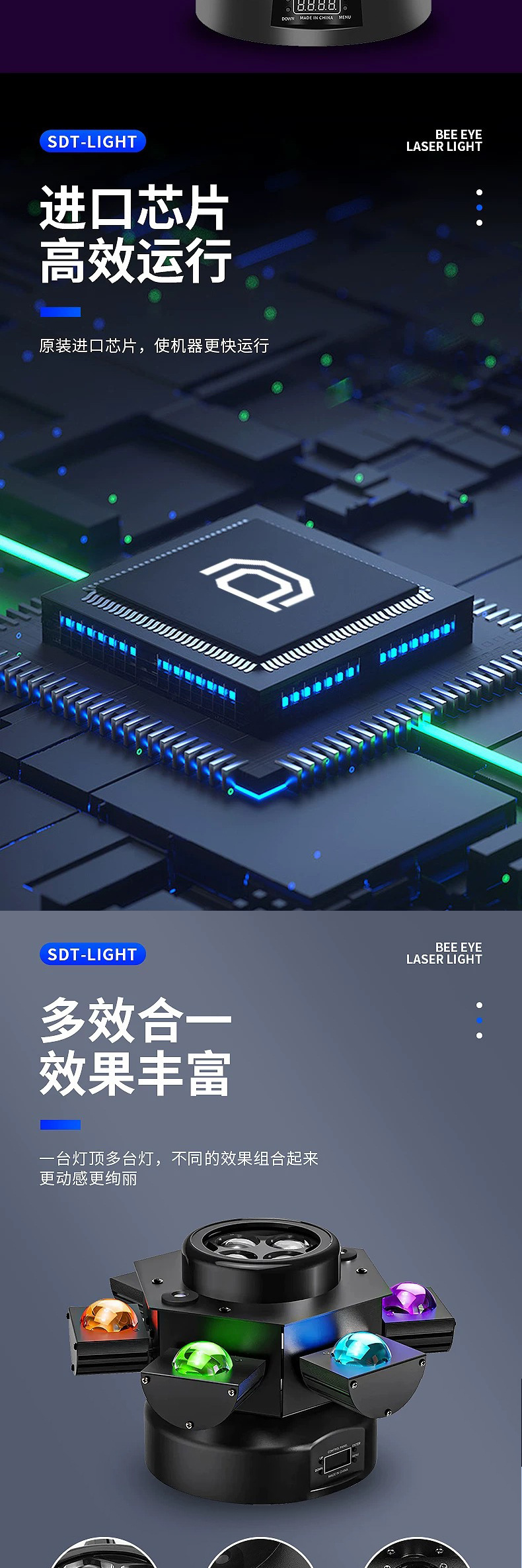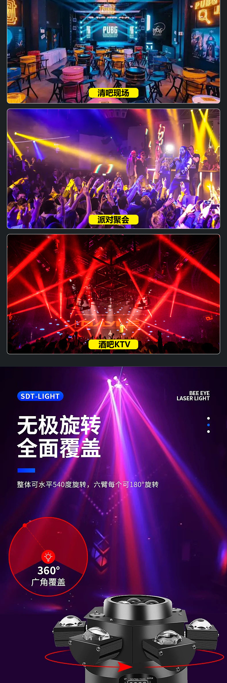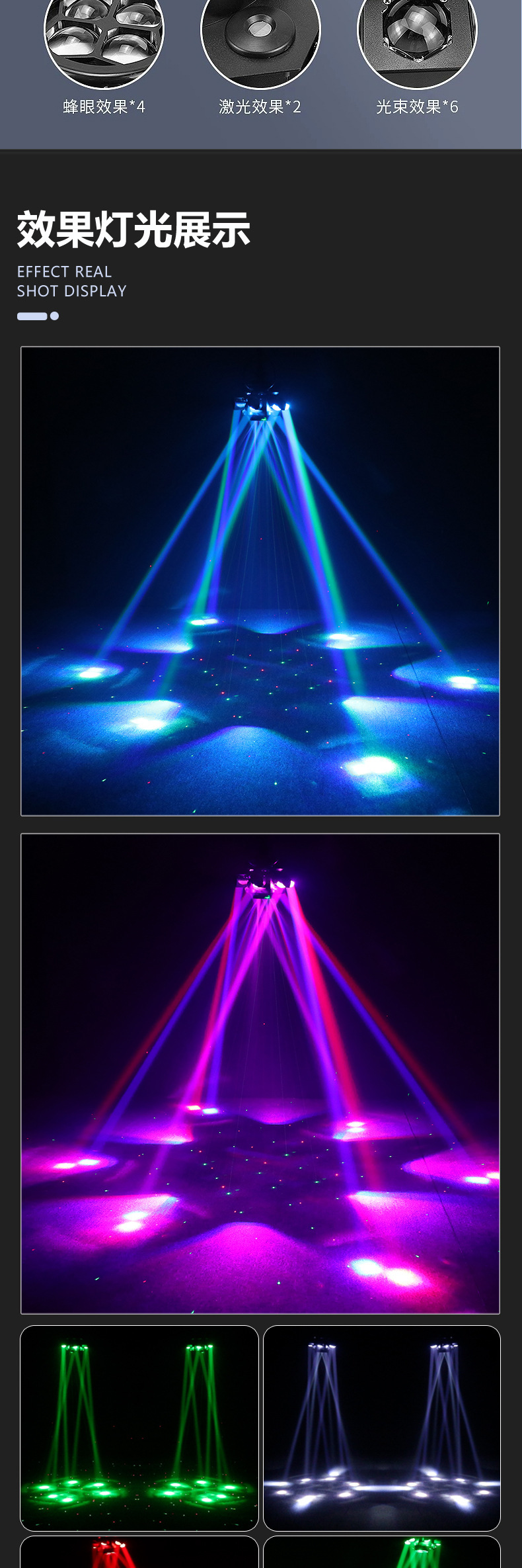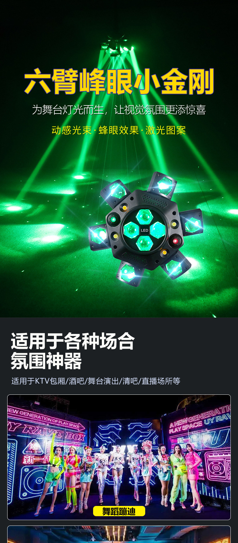 Nuevo ojo de abeja de seis brazos Xiao King Kong luz de haz láser barra de barra clara luz ambiental KTV Xiao King Kong torbellino sacudiendo la cabeza