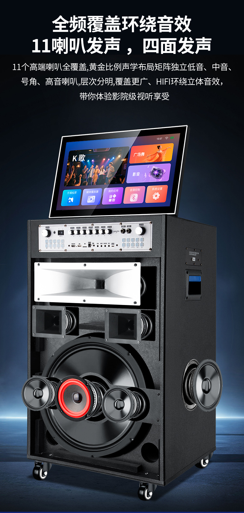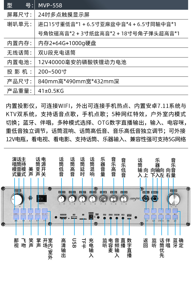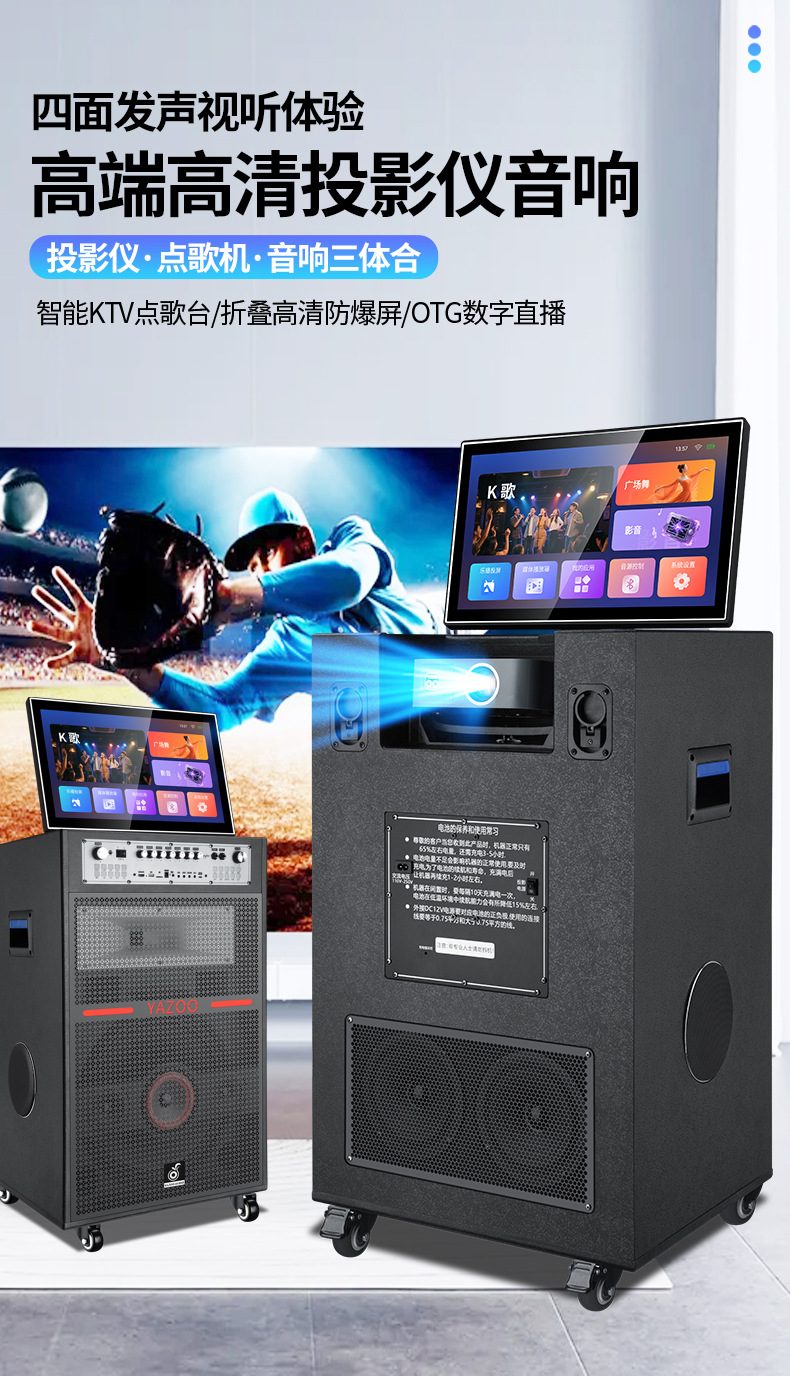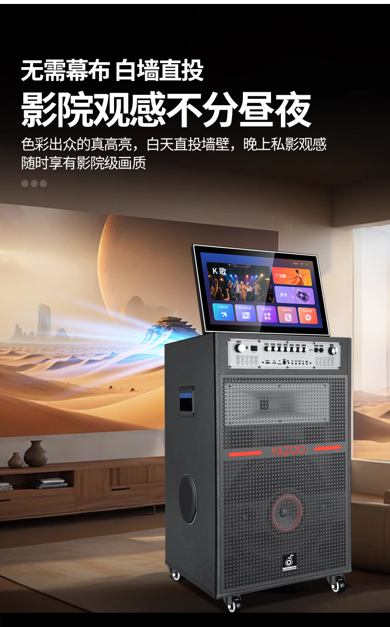 558 máquina de audio y video de bambú de alto rendimiento con proyección de sonido al aire libre de alta potencia para cantar
