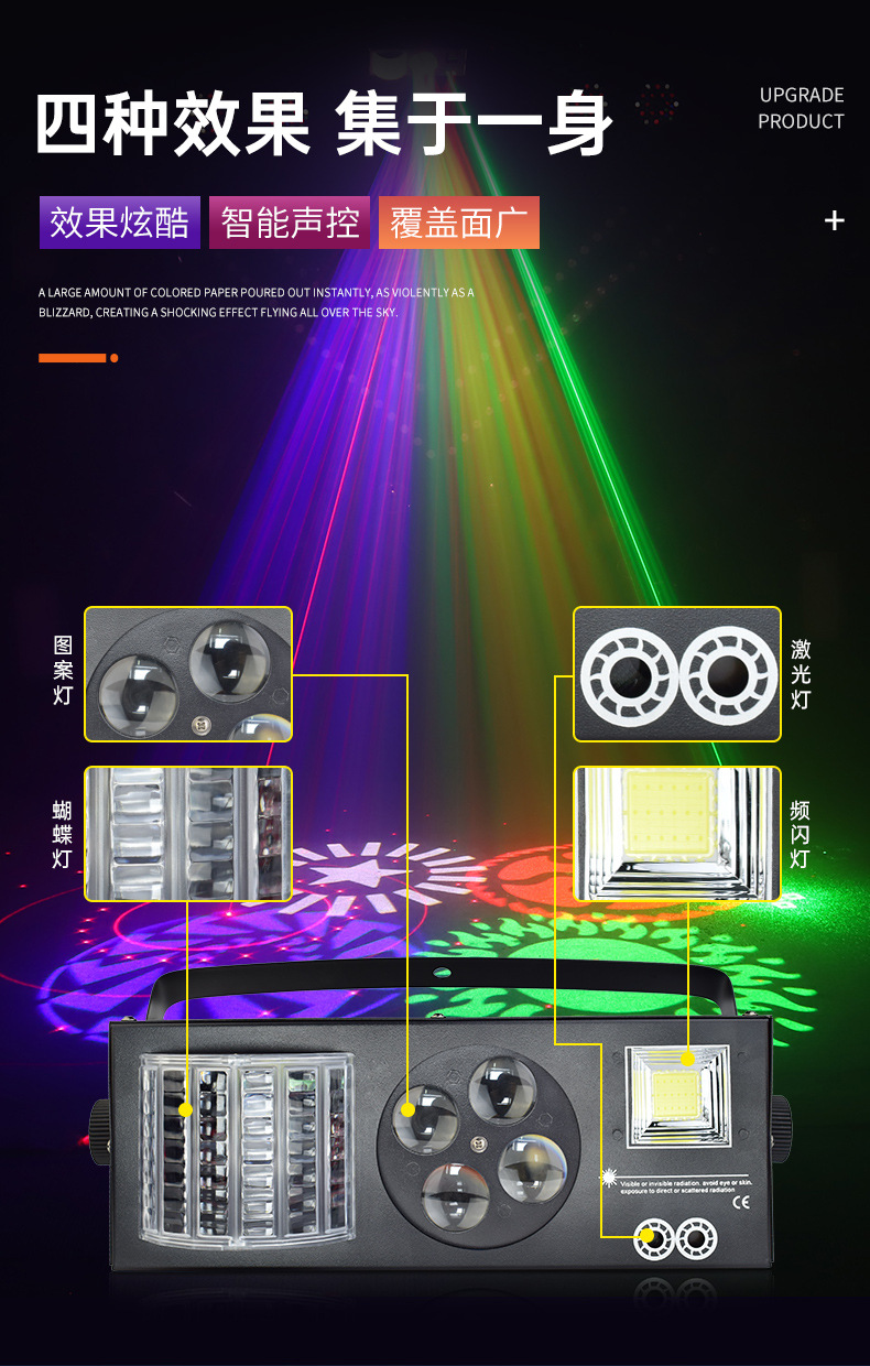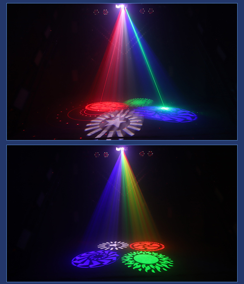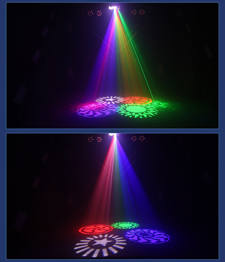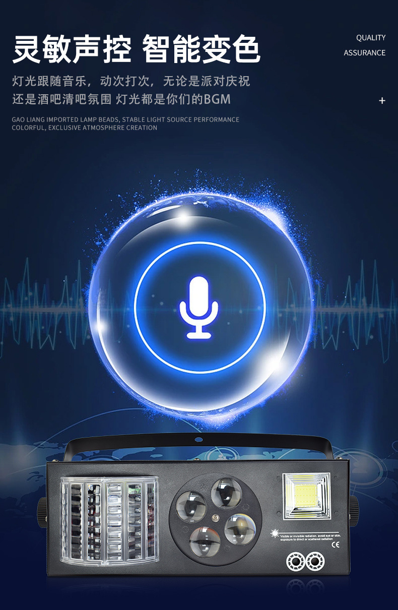 Cuatro en uno luz láser controlada por voz KTV sala de luz estroboscópica patrón de efecto de mariposa barra de luz de rayo láser