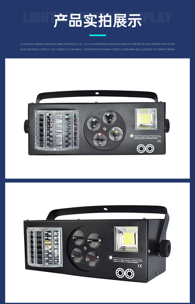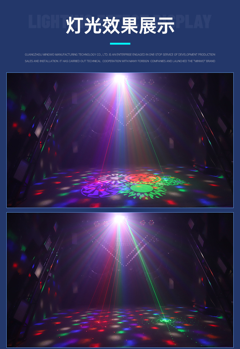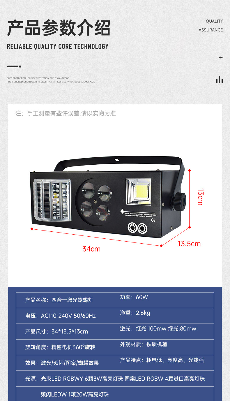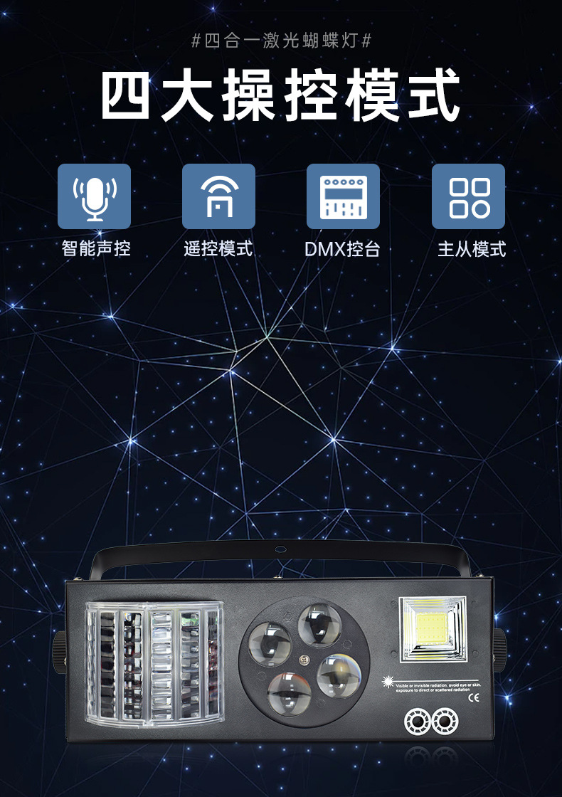 Cuatro en uno luz láser controlada por voz KTV sala de luz estroboscópica patrón de efecto de mariposa barra de luz de rayo láser