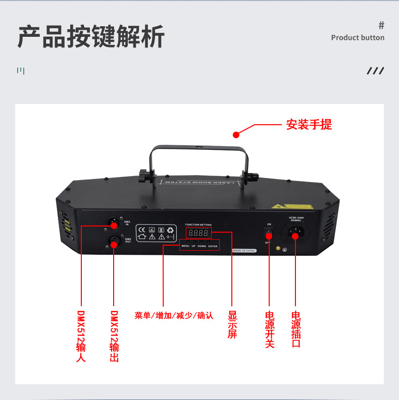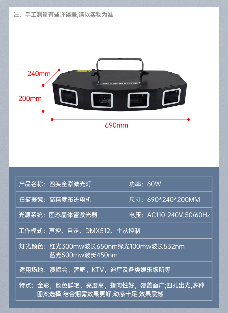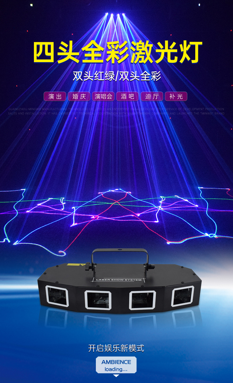 Animación a todo color de cuatro cabezas patrón láser Luz láser controlado por voz KTV flash Cuatro en Uno Barra de escenario salto de discoteca