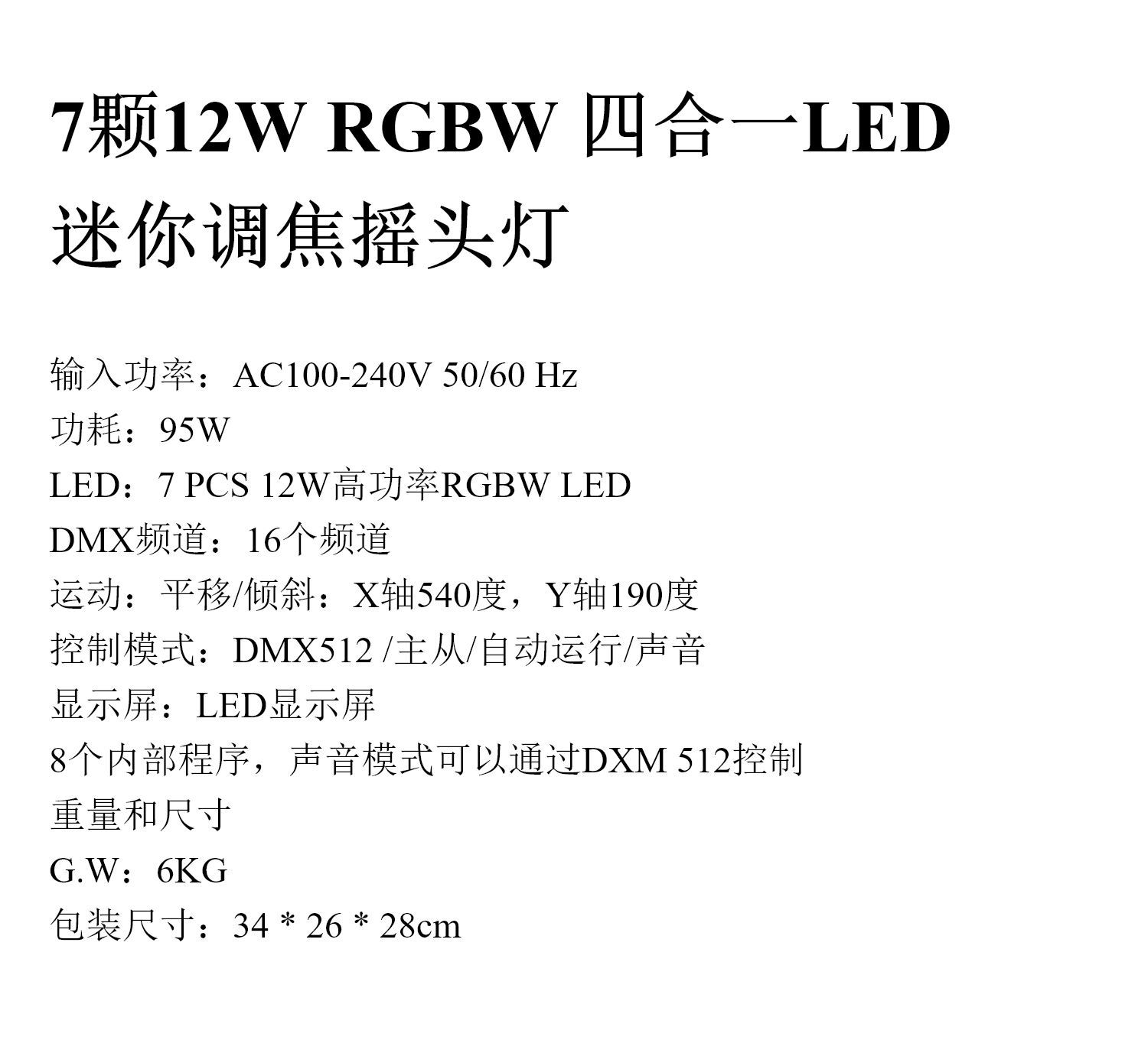 | Especificaciones | Enfoque de la lámpara de cabeza móvil |