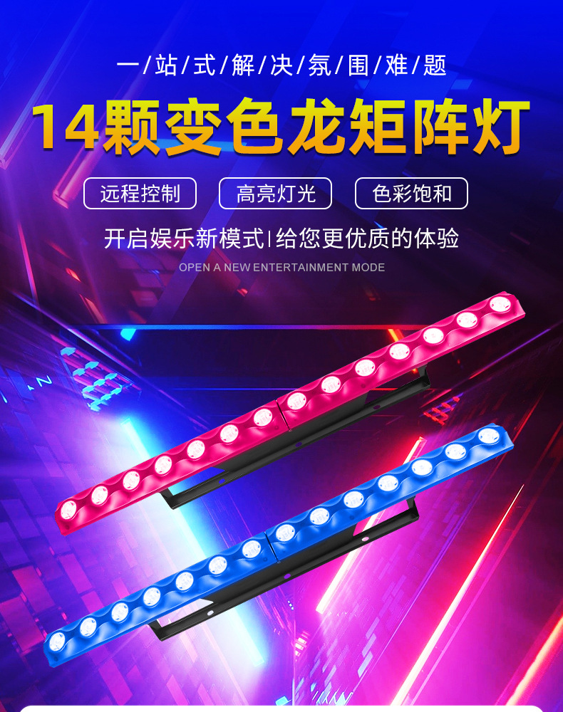 14 ojos LED matriz lámpara camaleón lámpara de caballo de etapa teñido lámpara de lavado de pared línea de fondo efectos especiales luz de fondo
