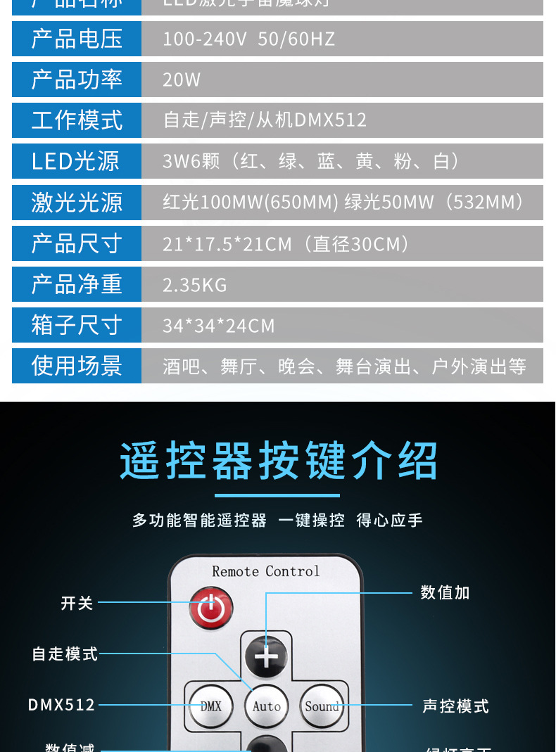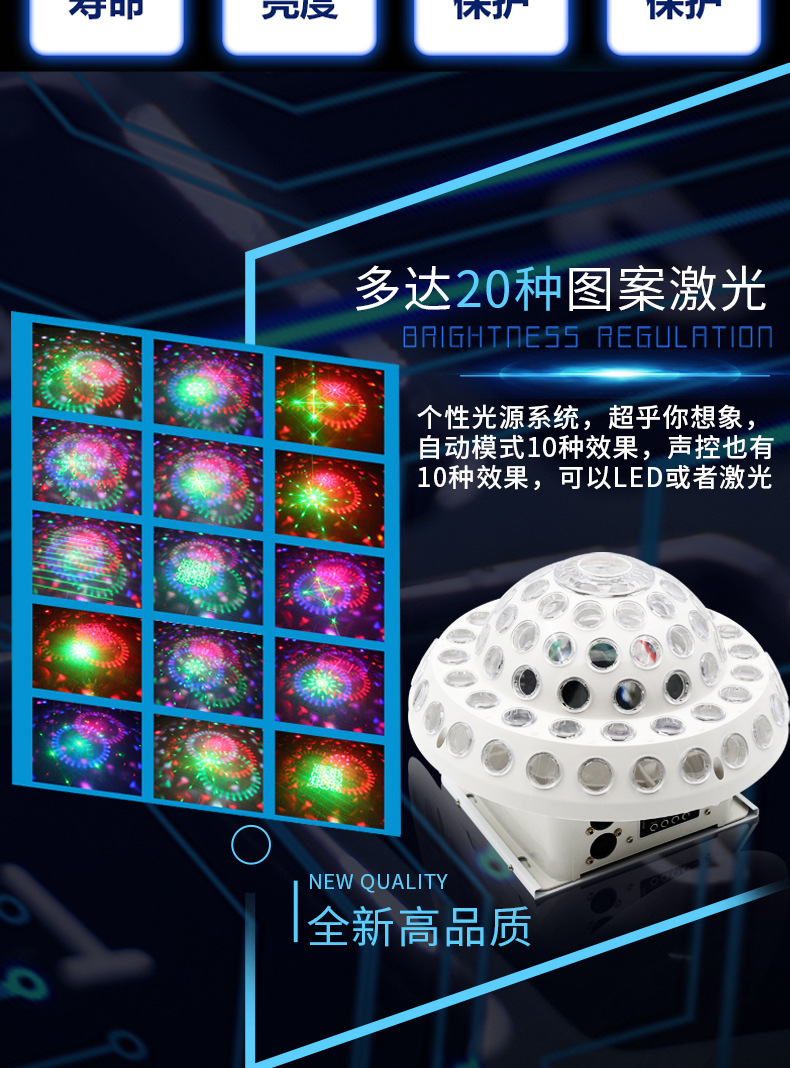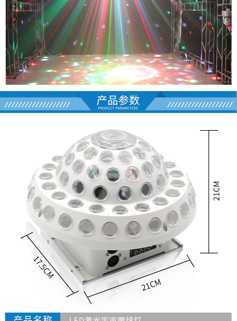 Luz colorida intermitente Gran Universo BOLA MÁGICA luz láser colorida luz giratoria controlada por voz casa discoteca sala de baile KTV atmósfera Luz