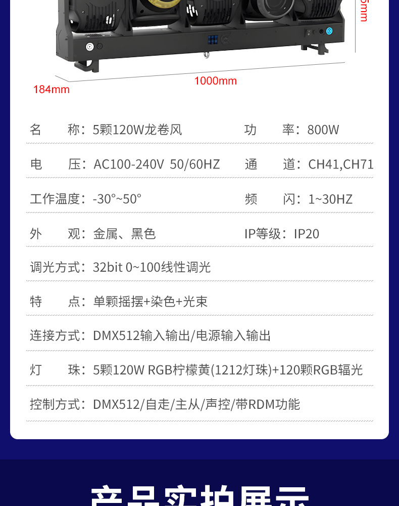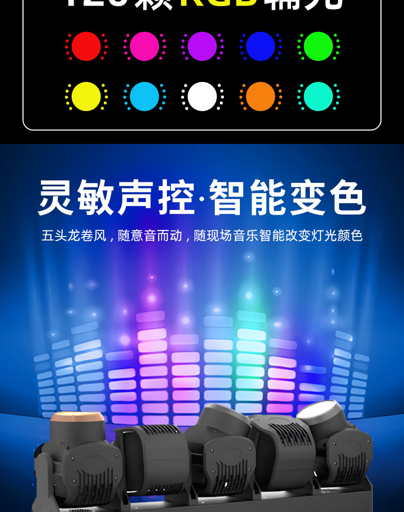 2025 nuevo LED de cinco cabezas tornado iluminación de cabeza sin pole bar bar club nocturno concierto equipo de escenario luz