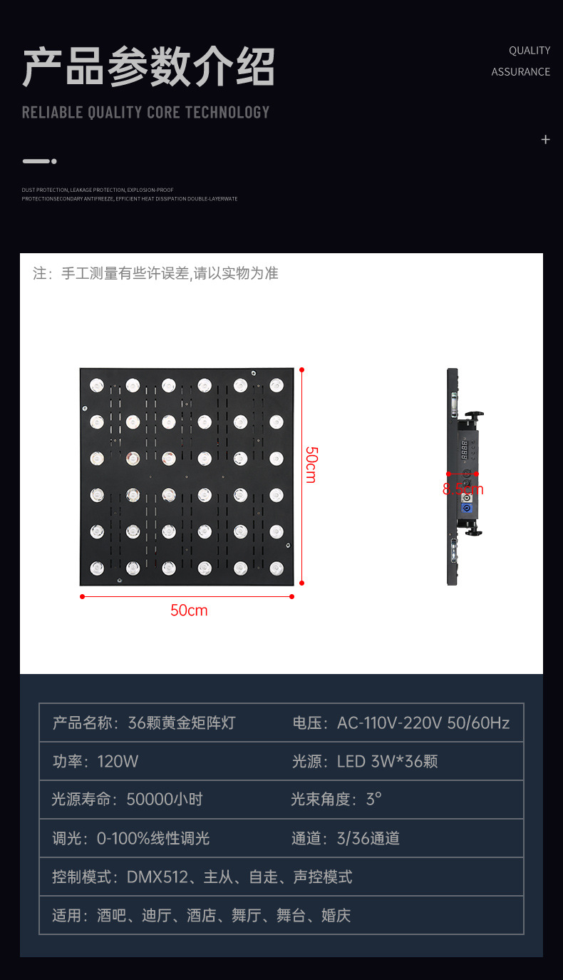 LED etapa KTV a todo color 36 luces de matriz de oro que realizan luces de efecto especial de fondo de la boda a todo color haz luces teñidas