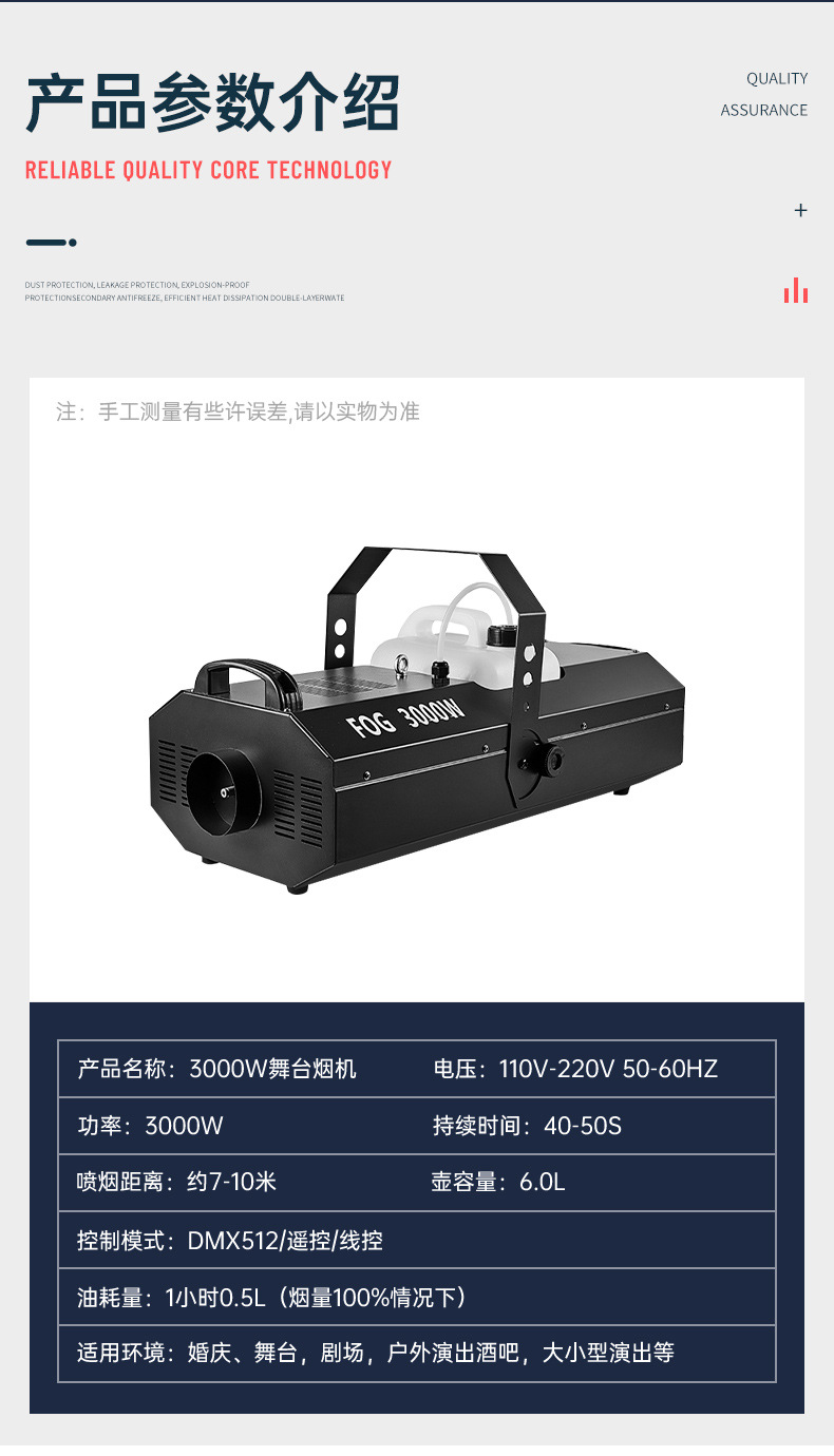 3000W de alta potencia temperatura constante máquina de humo temporización cuantitativa DMX512 ajustar el tamaño del humo etapa de la boda máquina de niebla