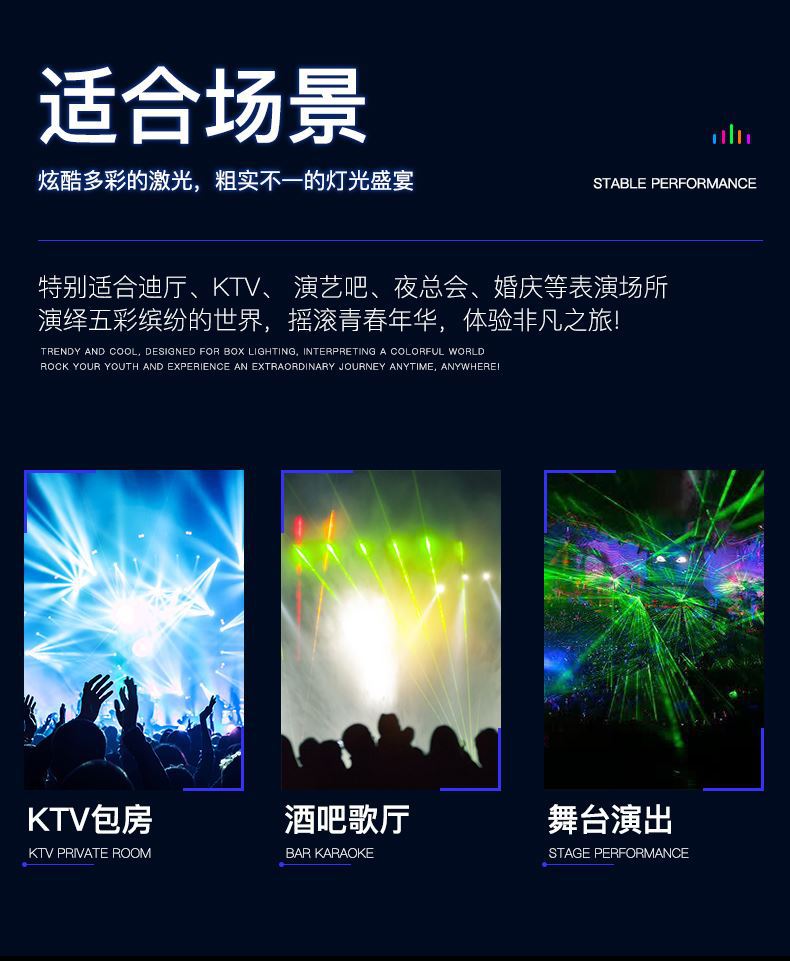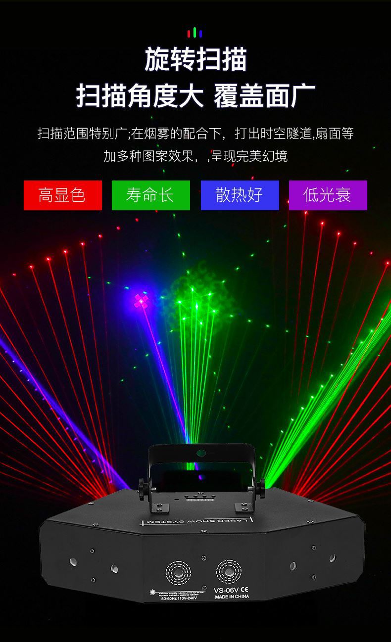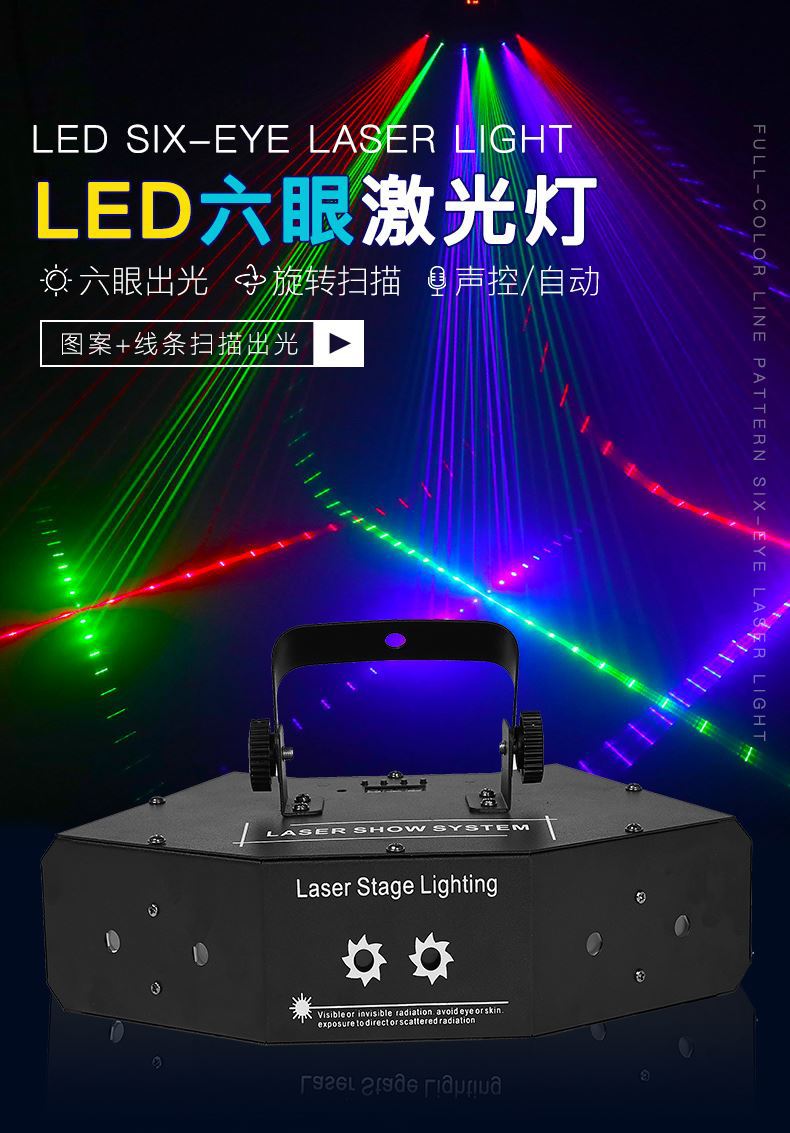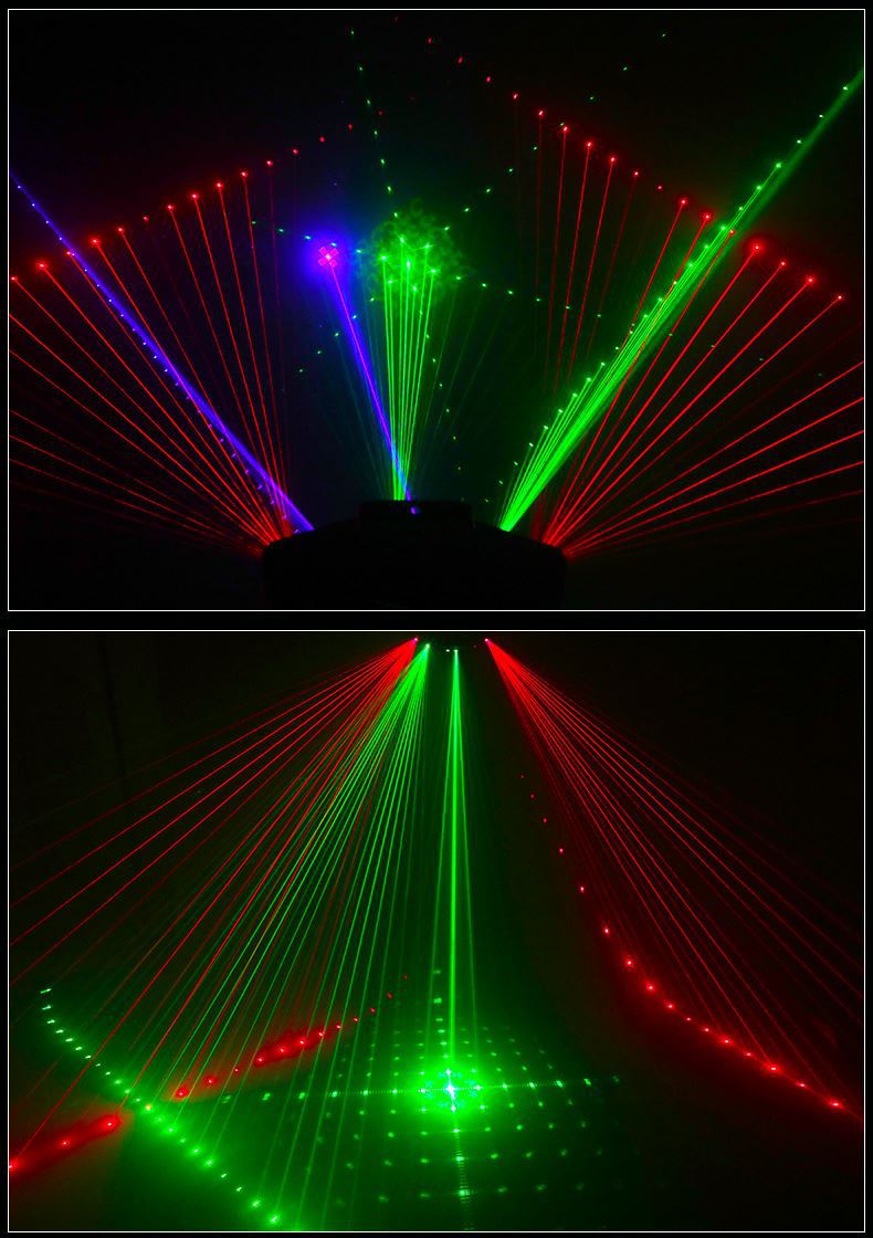 Luz láser de escaneo de seis ojos roja, verde y azul