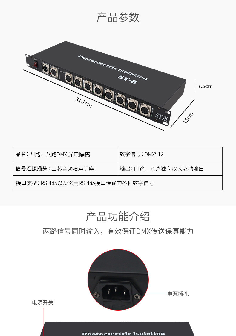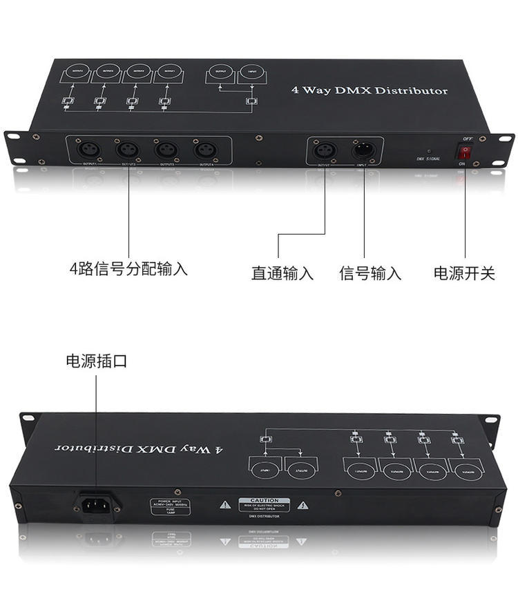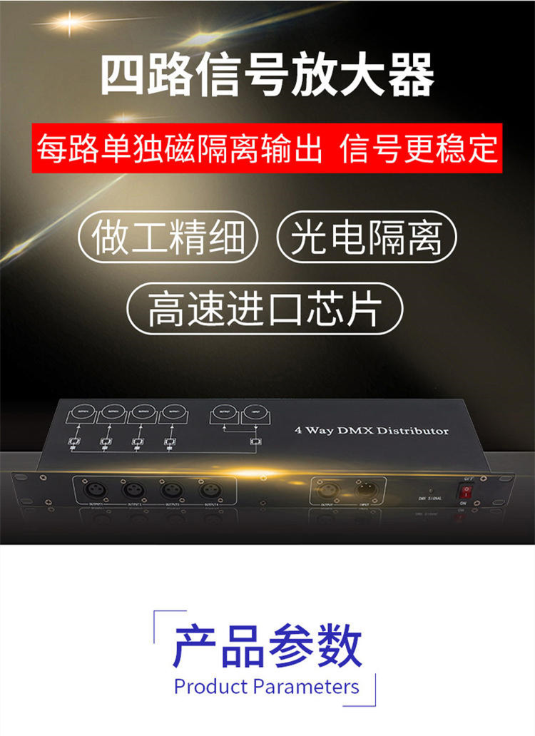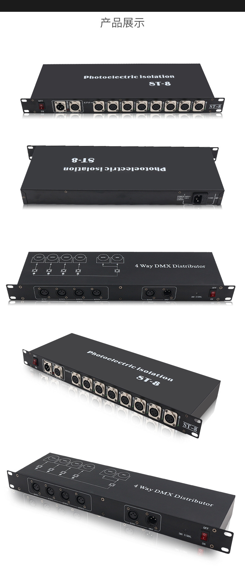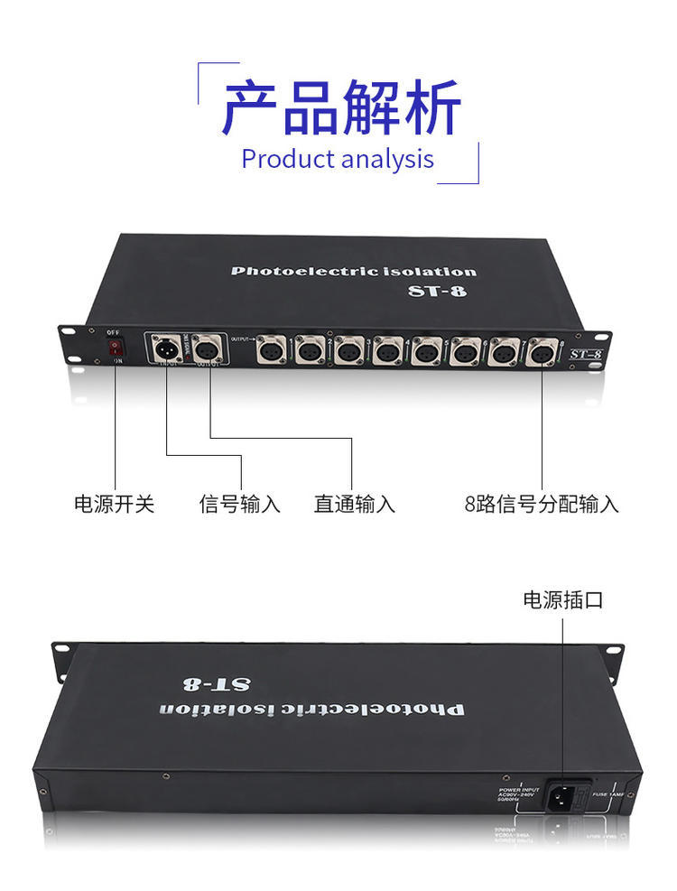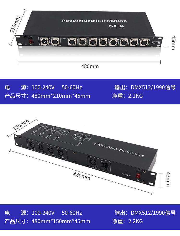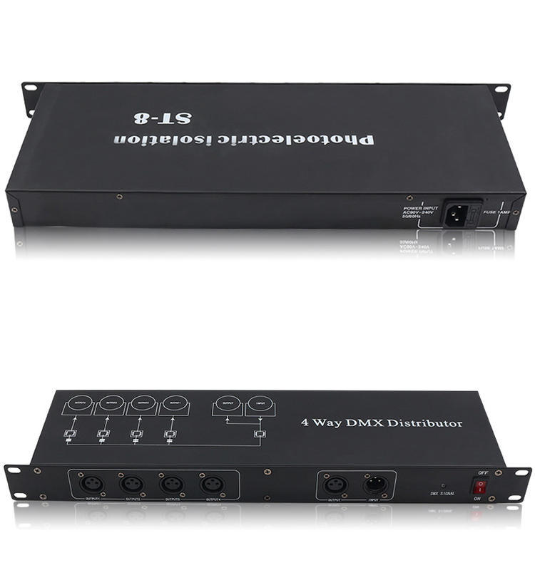 4-Way 8-Way etapa de la lámpara amplificador de señal óptica DMX512 amplificador de señal de cinco núcleos par fotoeléctrico distribuidor de luz
