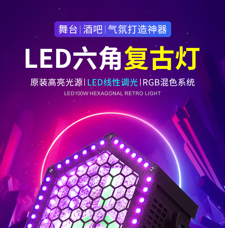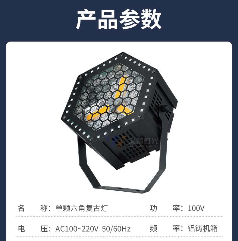 Wenjing lámpara retro hexagonal LED de un solo cabezal, marquesina, sala de transmisión en vivo, barra, luz de efecto de fondo intermitente, luz de matriz