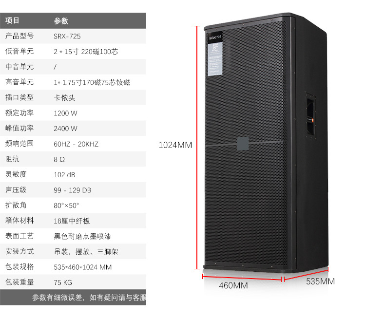 | Modelo | SRX 725 800W Edición estándar,SRX725 1200W versión superior |