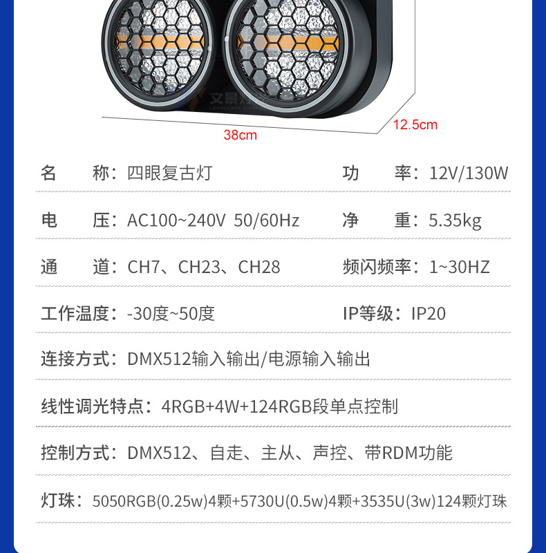 Matriz de cuatro ojos lámpara retro barra clara sala de transmisión en vivo matriz LED lámpara de efecto de carrera de caballos de colores