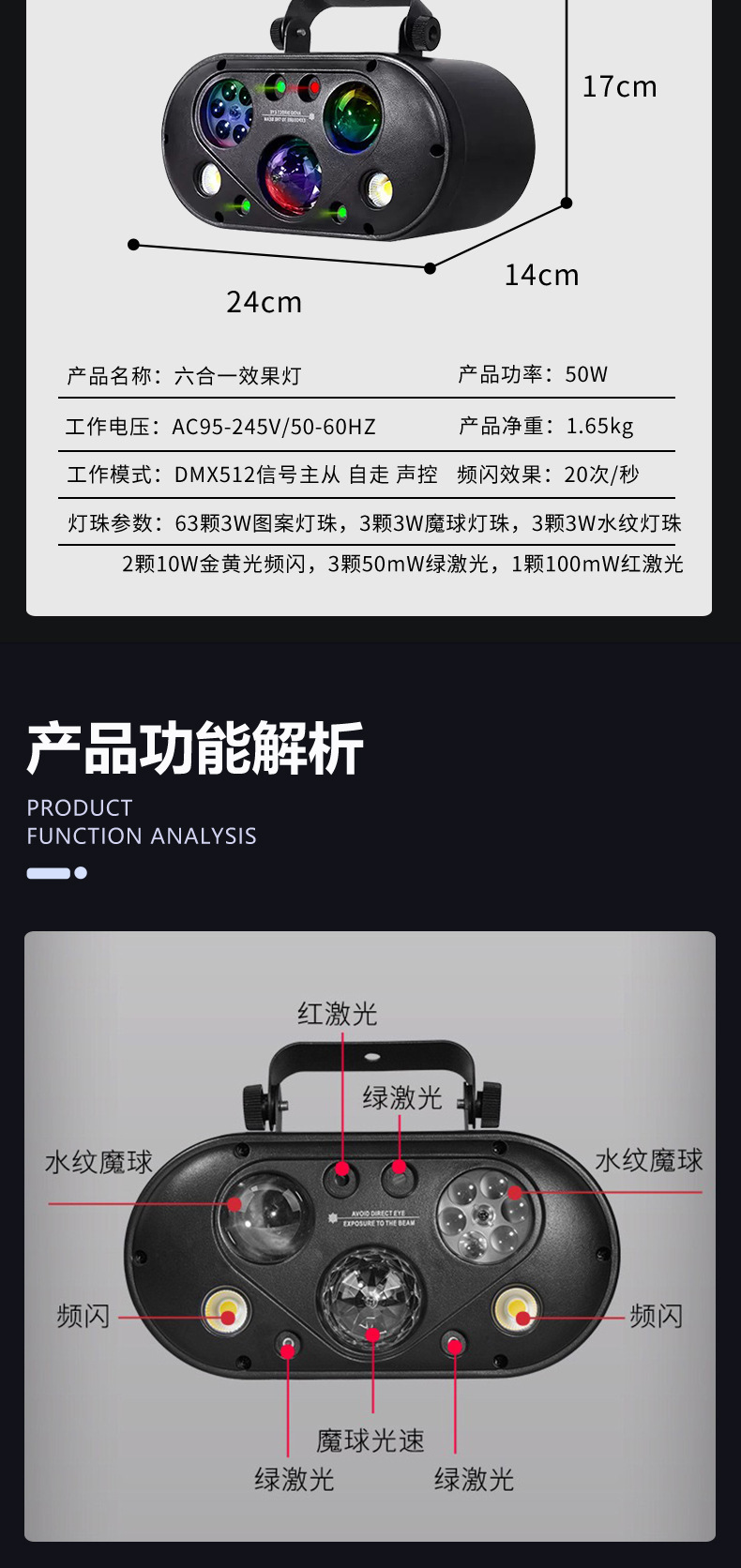 Lámpara de efecto seis en uno Lámpara de ambiente estroboscópica láser LED Barra KTV Lámpara de escenario colorida Equipo de luz Comercio exterior