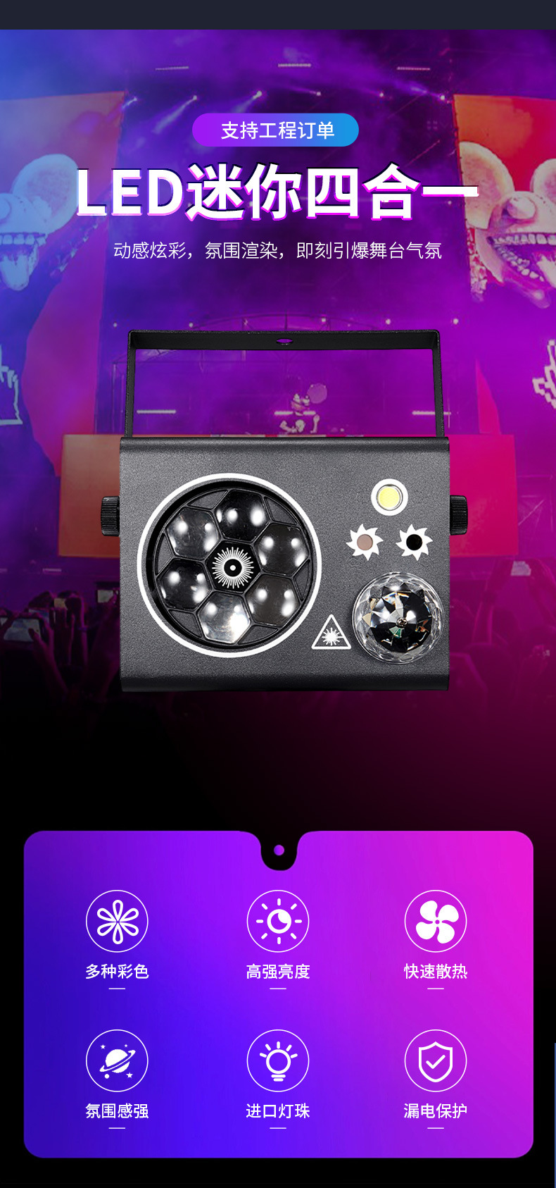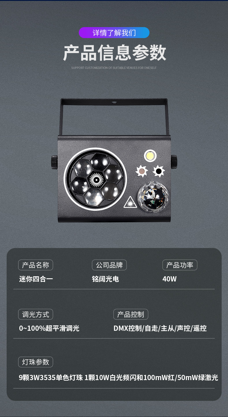 Mini lámpara de escenario cuatro en uno al por mayor luz de efecto de interior KTV luz de barra LED luz láser de flash colorida