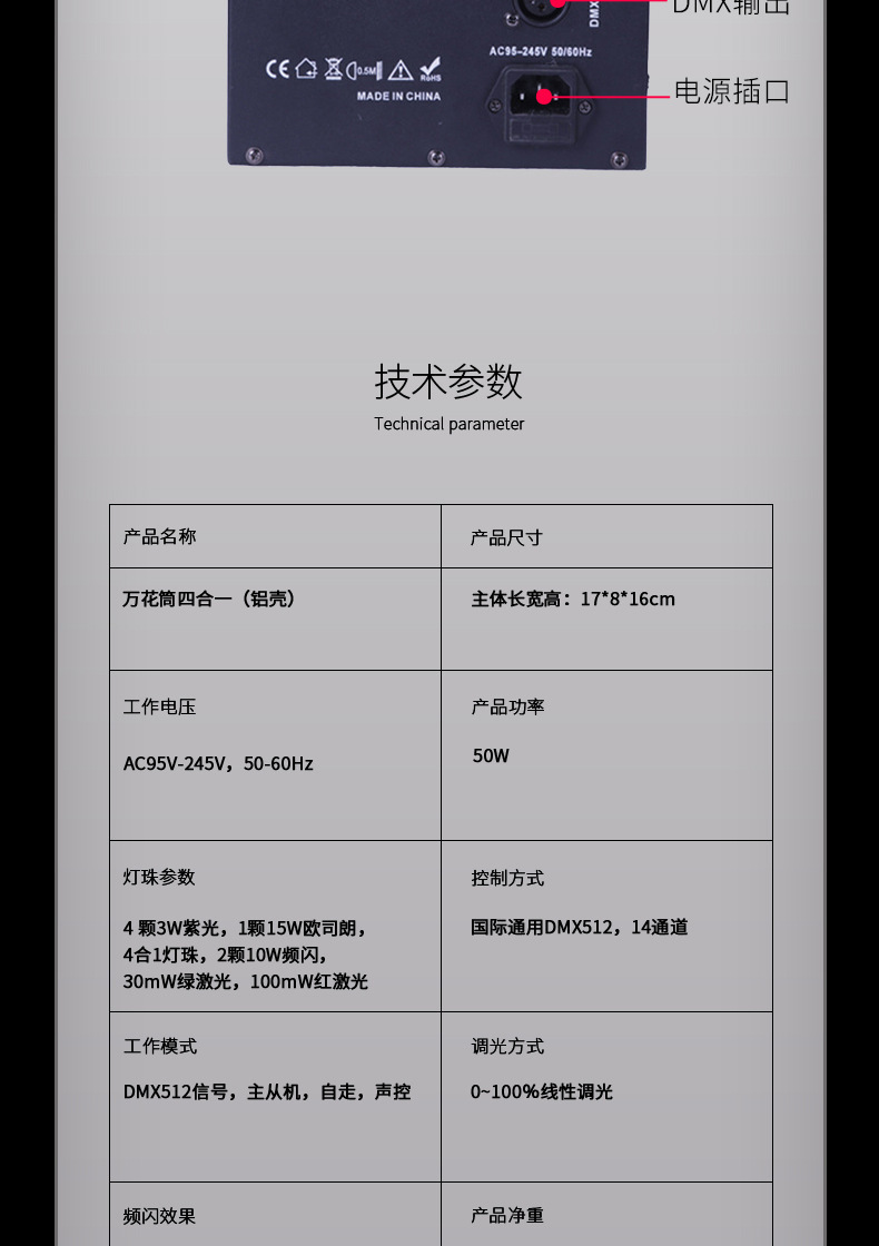 Caleidoscopio cuatro en uno lámpara de escenario estroboscópico colorido barra LED KTV equipo de iluminación de escenario comercio exterior exclusivamente en stock