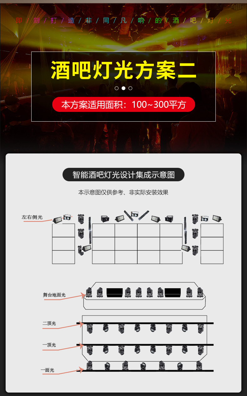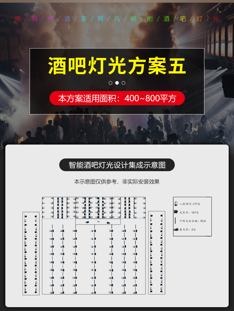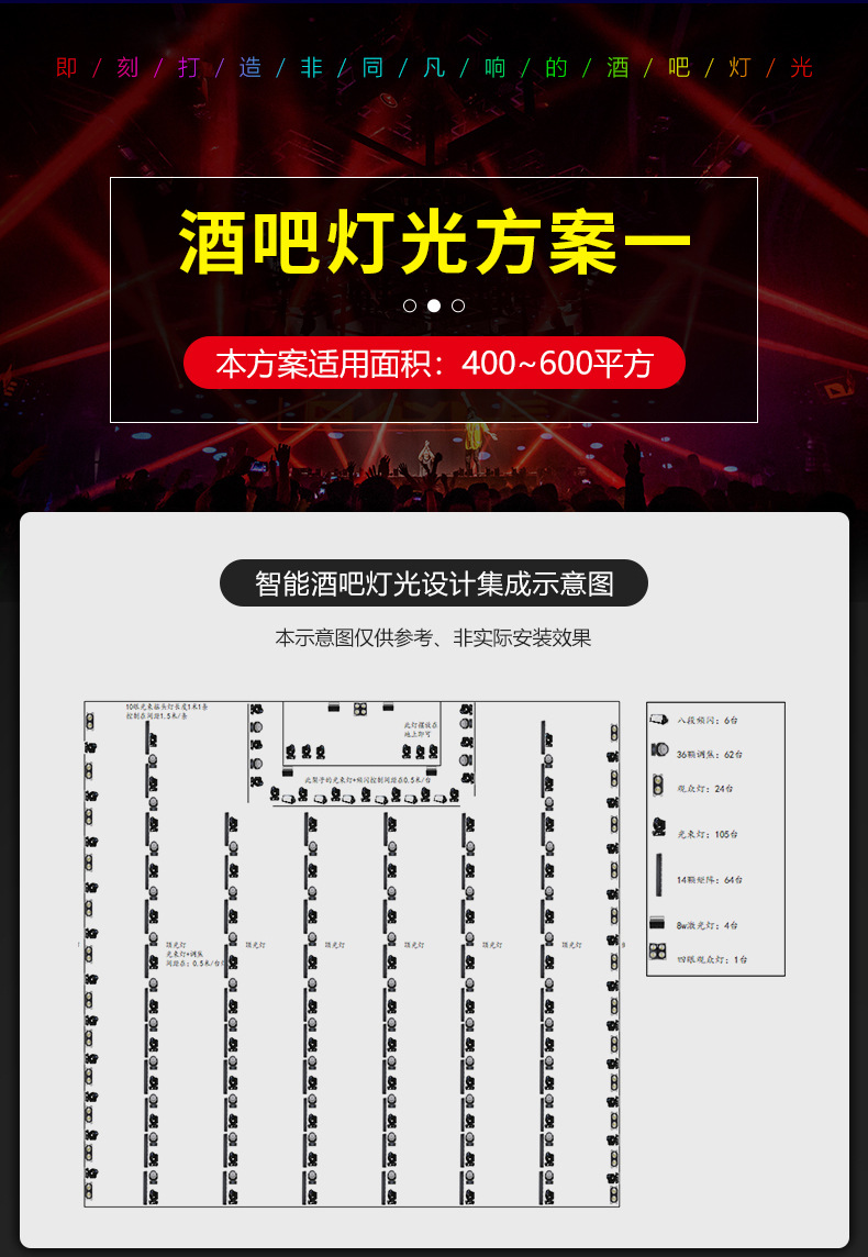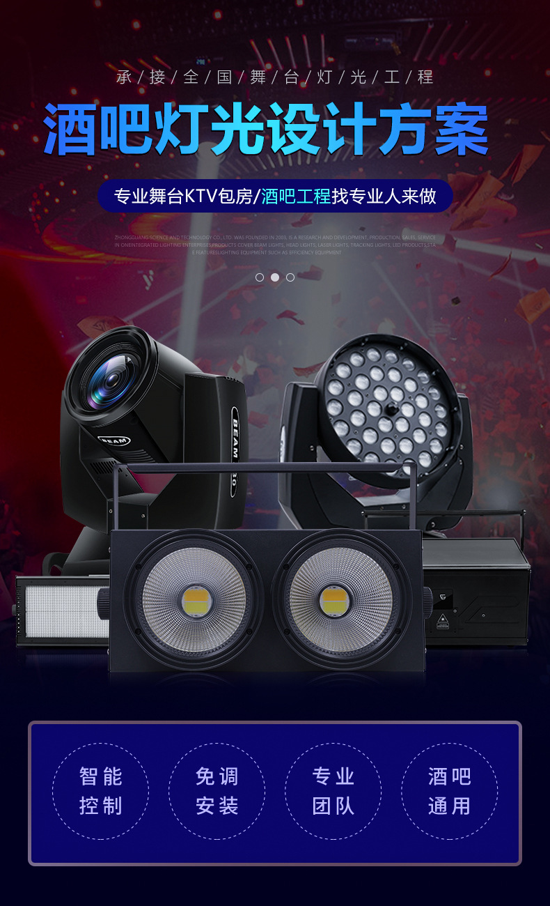 Solución de iluminación de la barra Restaurante de música Qingba KTV boda equipo de ingeniería de iluminación de escenario pequeño y mediano conjunto completo