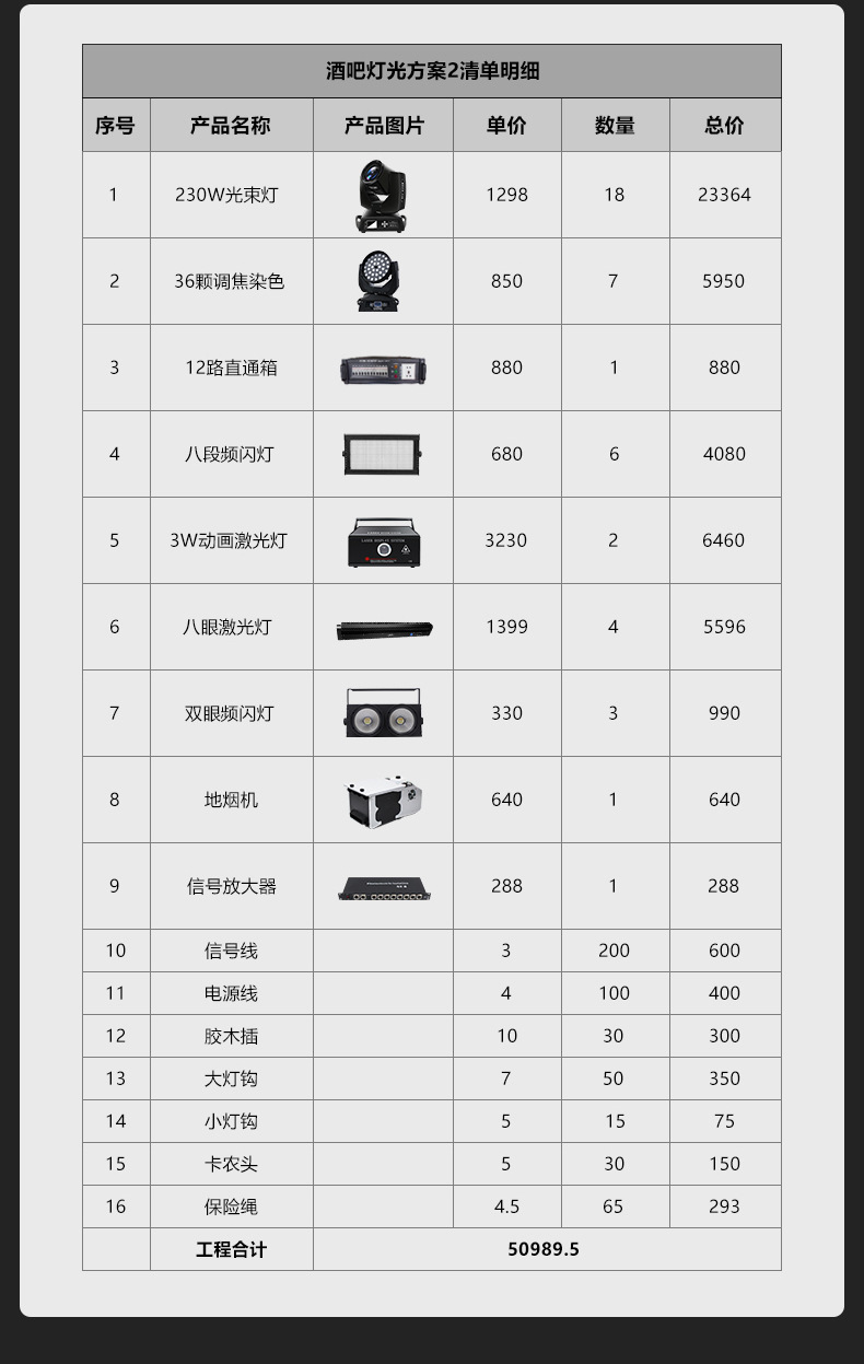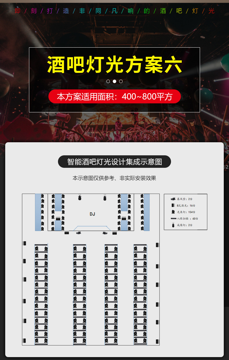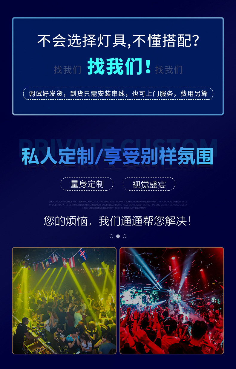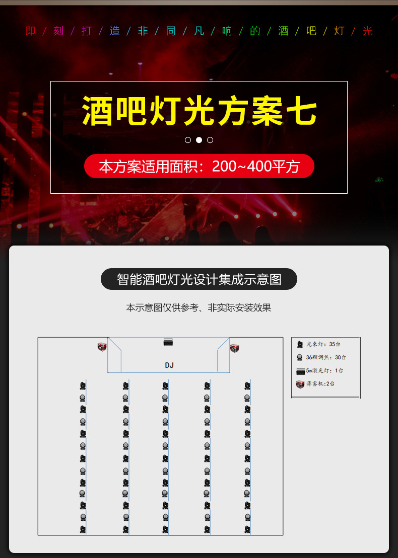 Solución de iluminación de la barra Restaurante de música Qingba KTV boda equipo de ingeniería de iluminación de escenario pequeño y mediano conjunto completo