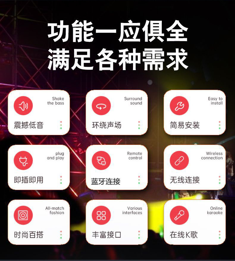 | color | sonido,Altavoz + amplificador,Altavoz + amplificador + micrófono,Altavoz + amplificador + micrófono + máquina de karaoke |