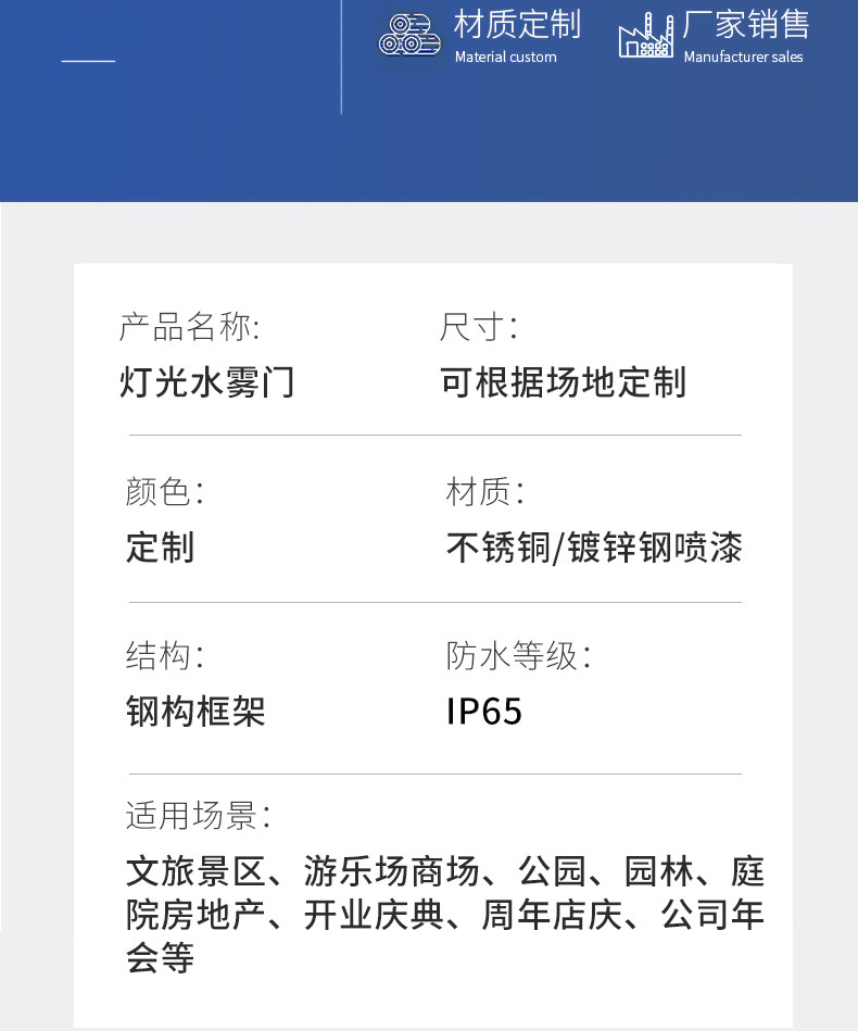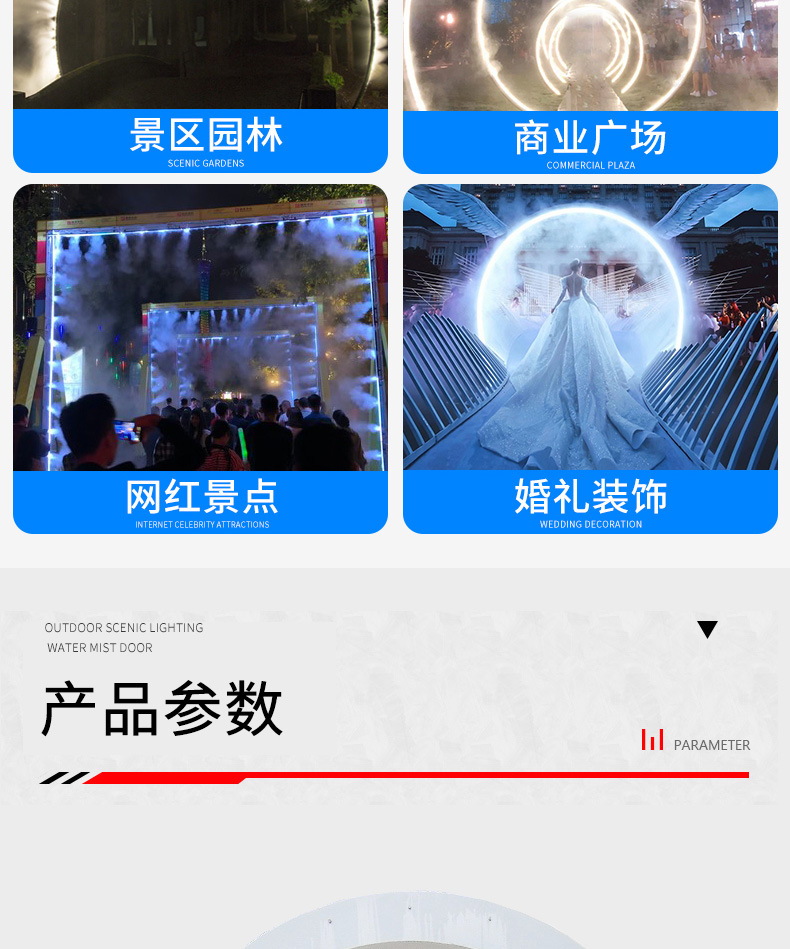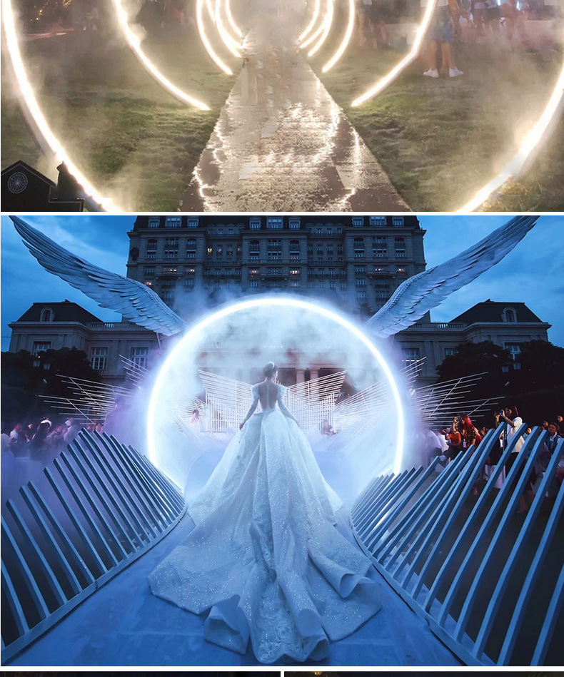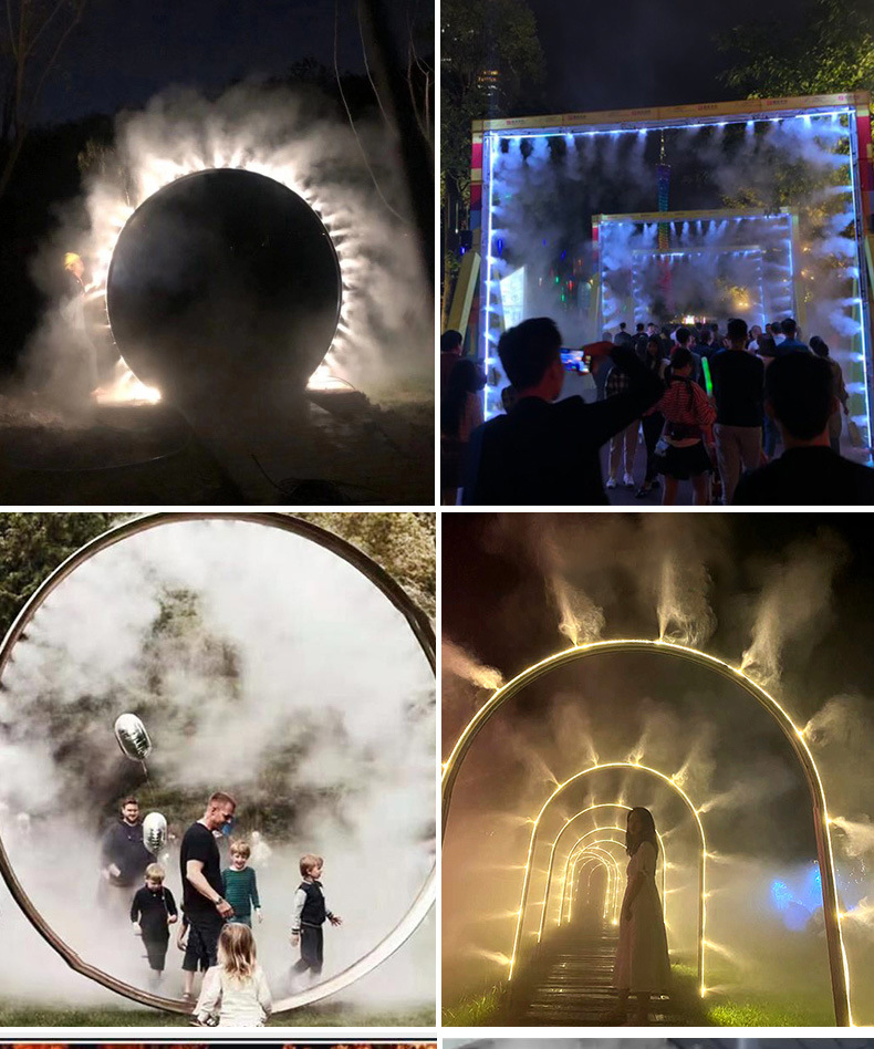 Internet celebridad niebla Canal de la puerta literaria viaje nocturno Tour escénico punto LED Luz de drenaje accesorios acero inoxidable entrega interactiva agua niebla puerta