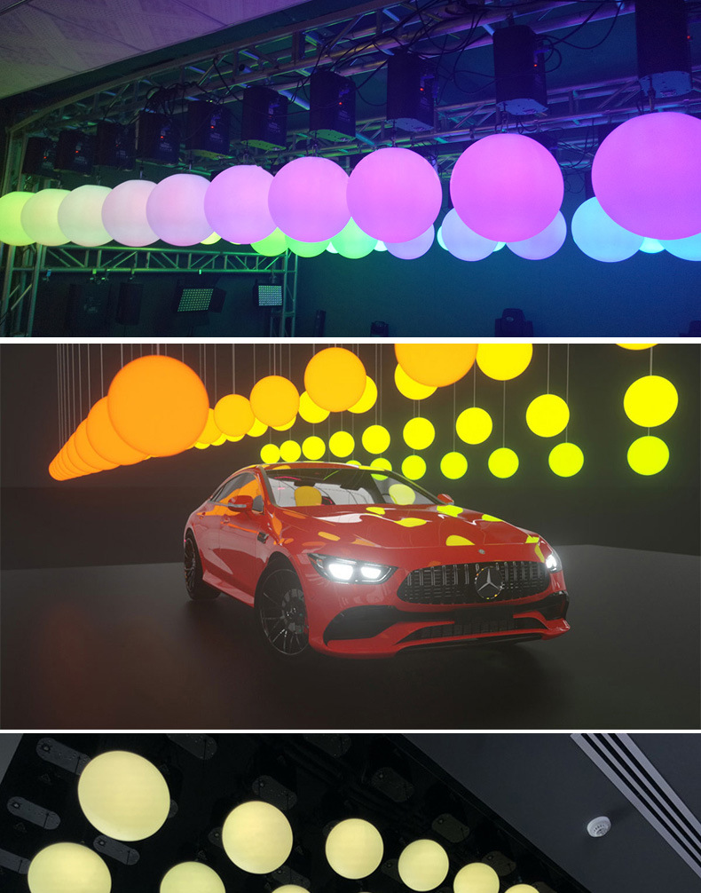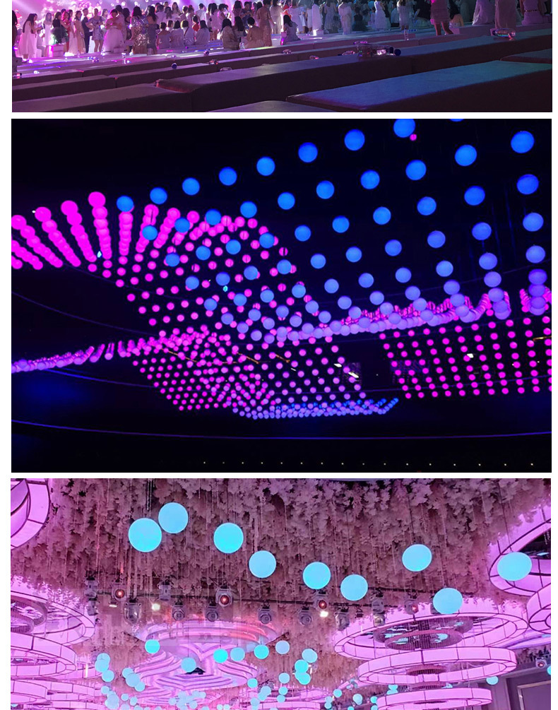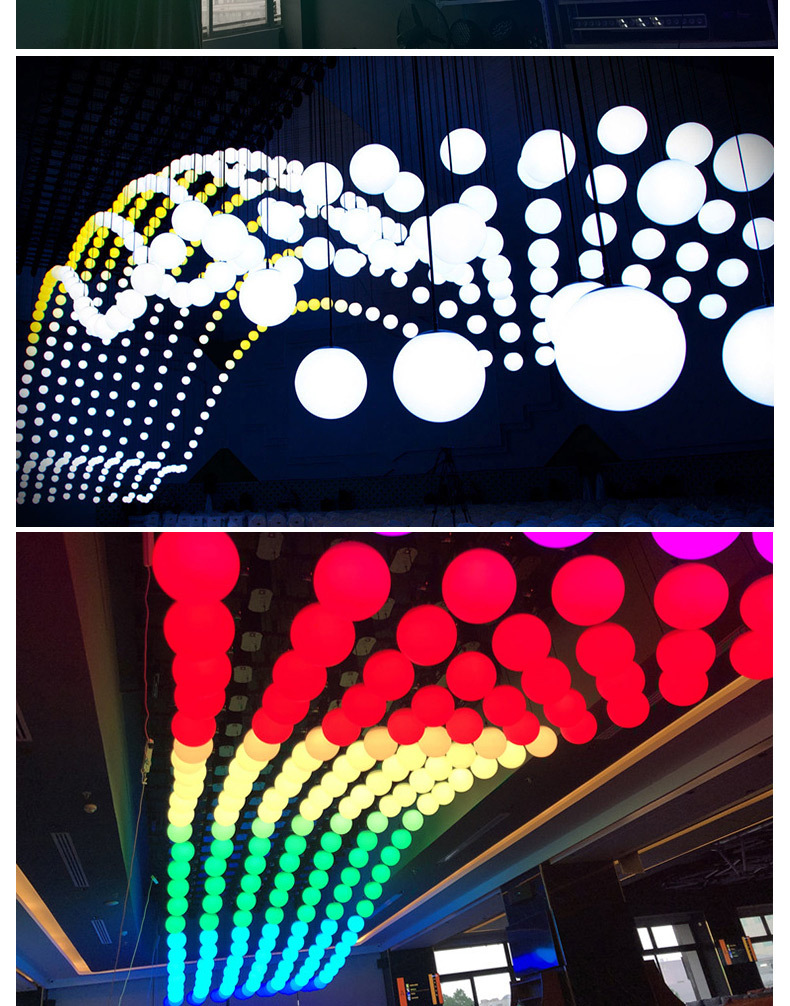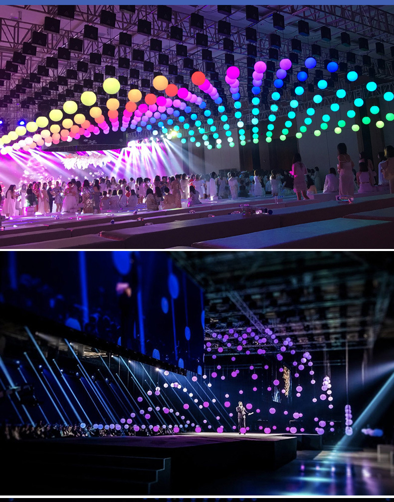 Bola de elevación de la etapa del LED centro comercial sala de exposiciones bar bola luminosa CNC dinámica matriz suspensión efecto bola que cambia de color