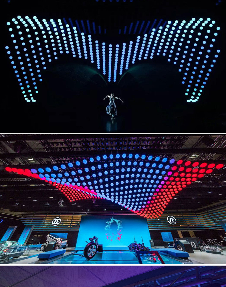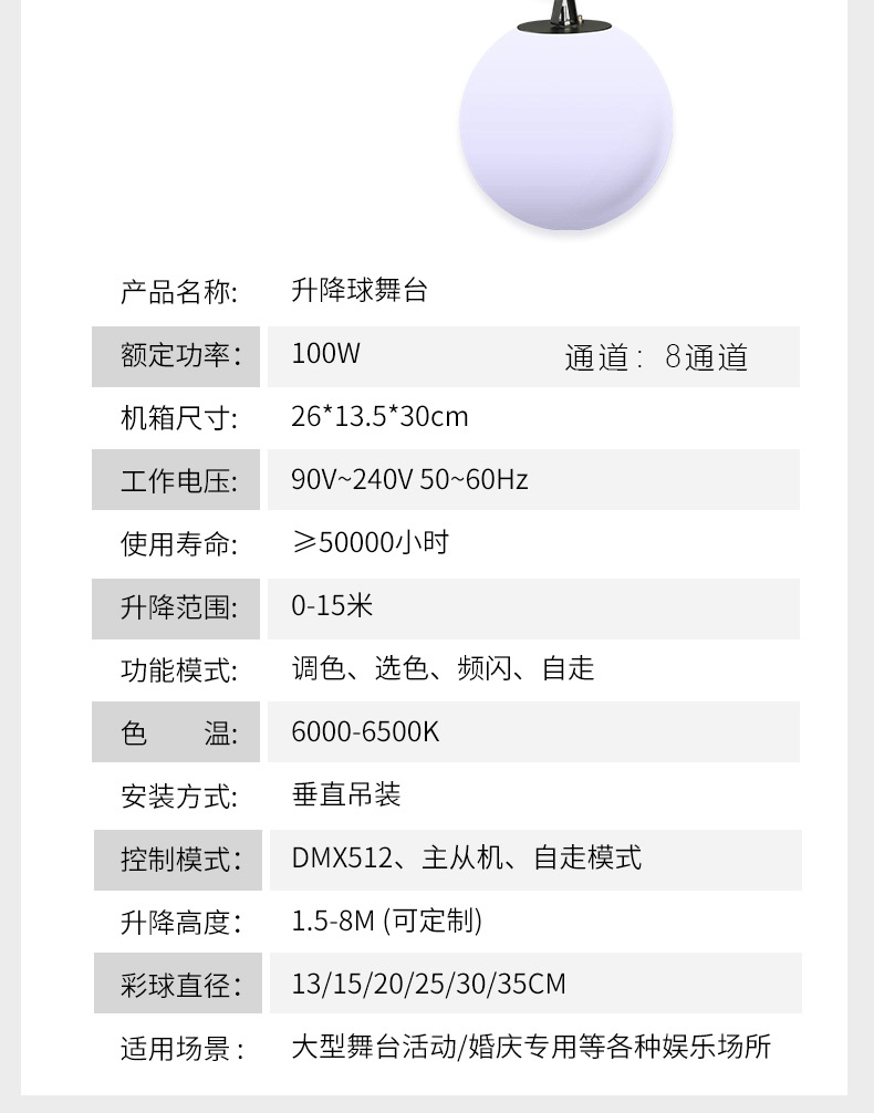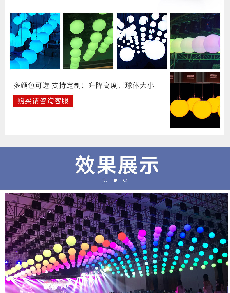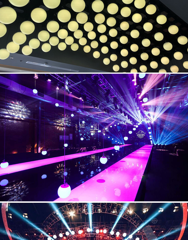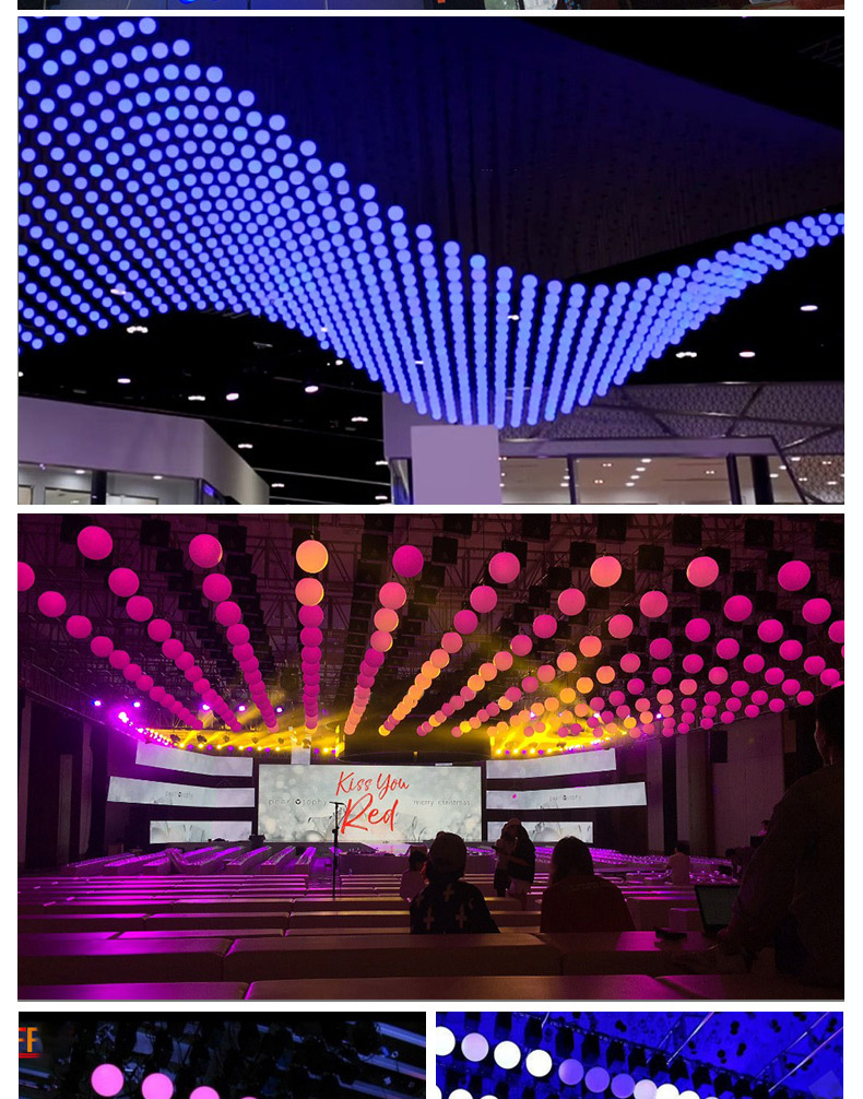 Bola de elevación de la etapa del LED centro comercial sala de exposiciones bar bola luminosa CNC dinámica matriz suspensión efecto bola que cambia de color