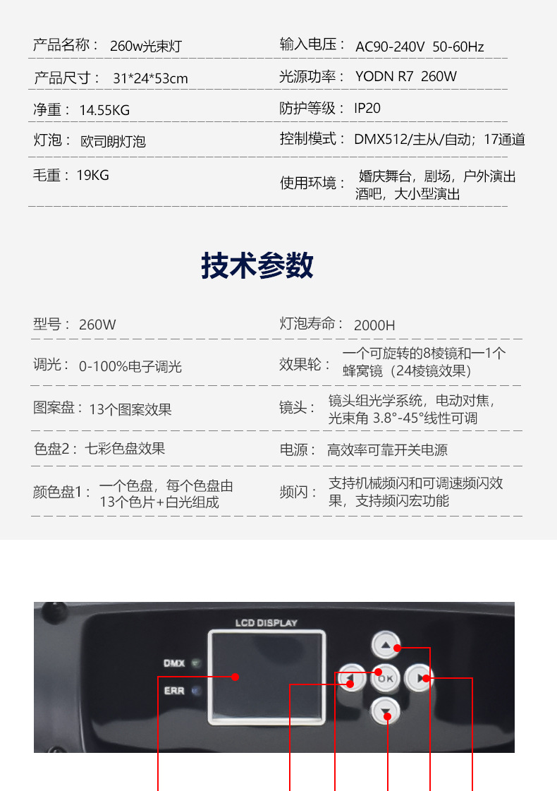 Luz de haz Smart Prism King de 260 W: modelo insignia