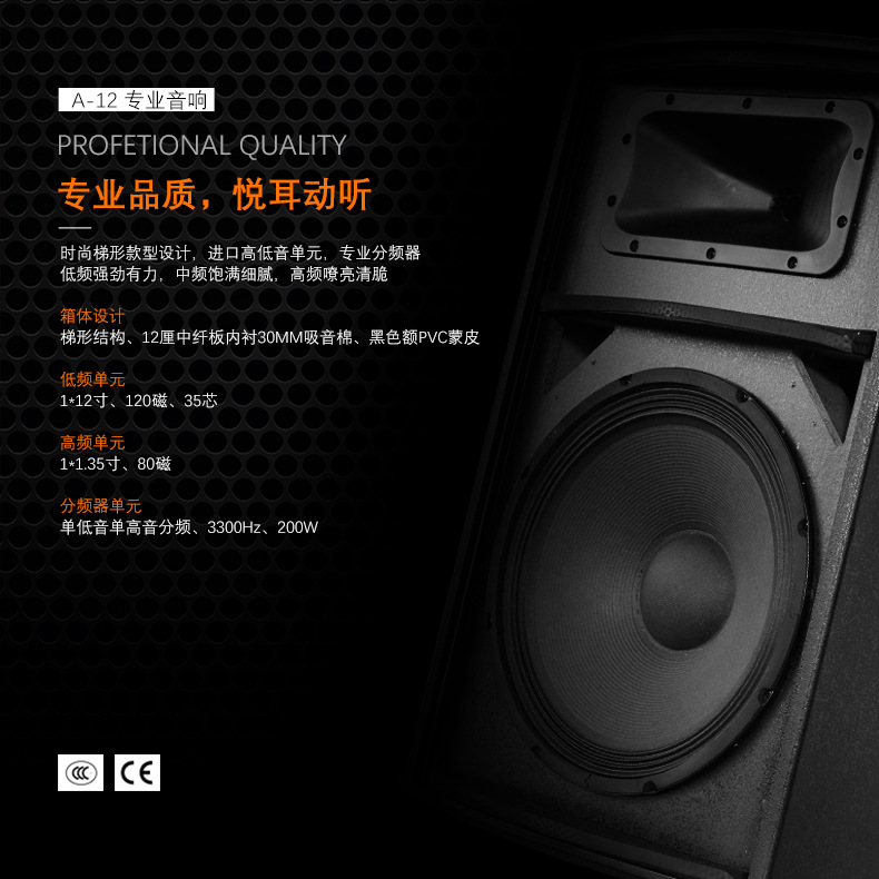 Equipo de sonido profesional de rango completo pasivo de 12 pulgadas y 450 W para exteriores, para plazas y escenarios, venta al por mayor del fabricante