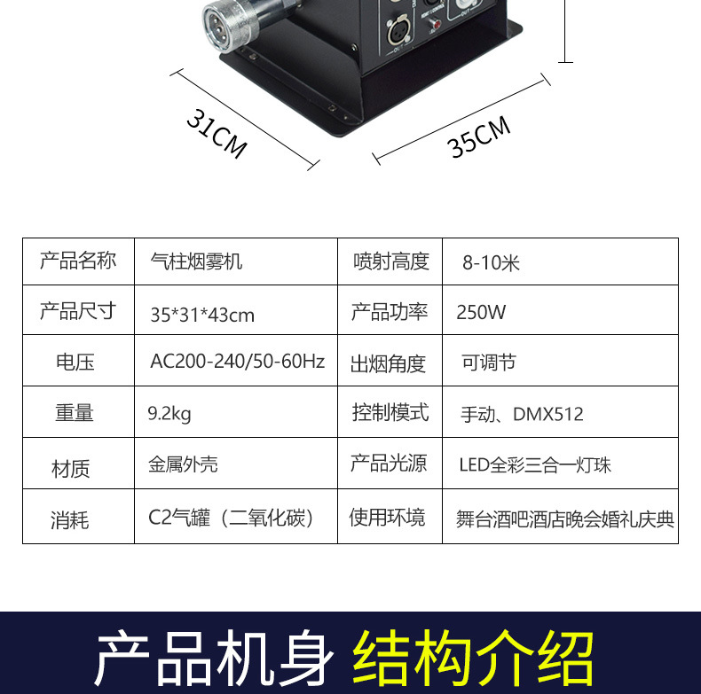 Máquina de columna de aire de dióxido de carbono LED Máquina de columna de aire de CO2 Máquina de humo de columna de aire multiángulo Máquina de humo de rendimiento de etapa de barra