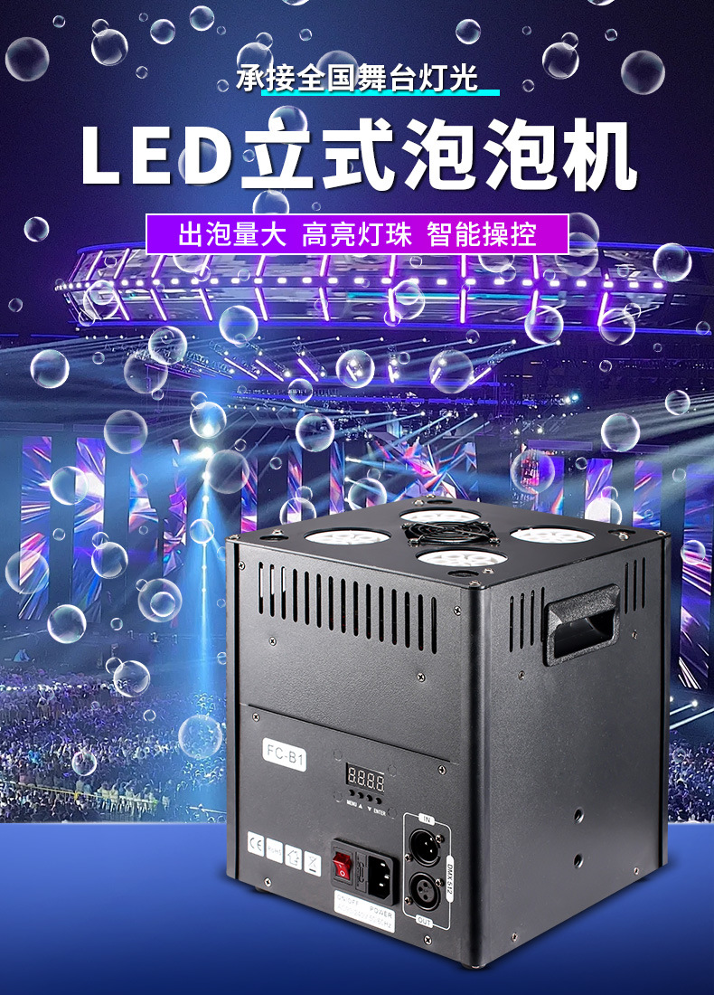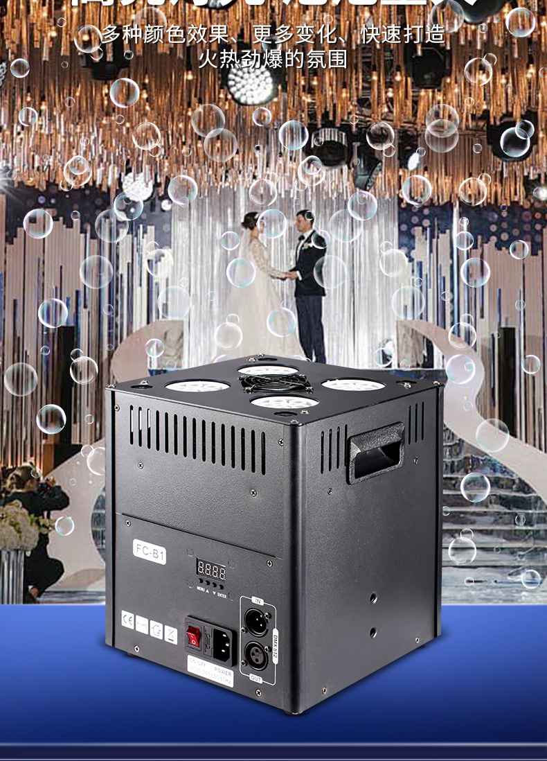 Nueva máquina de burbujas LED vertical para espectáculo especial de escenario de boda props bar gran máquina de soplado de burbujas lámpara de escenario