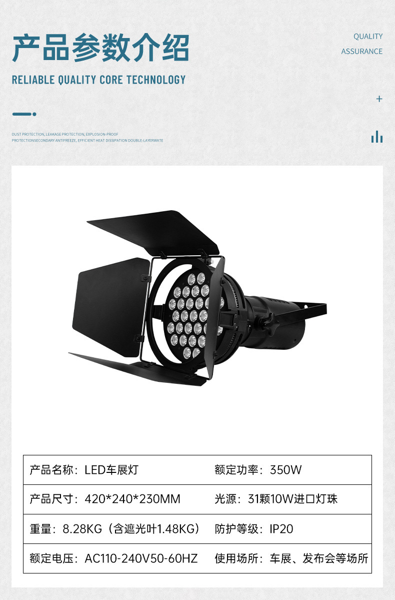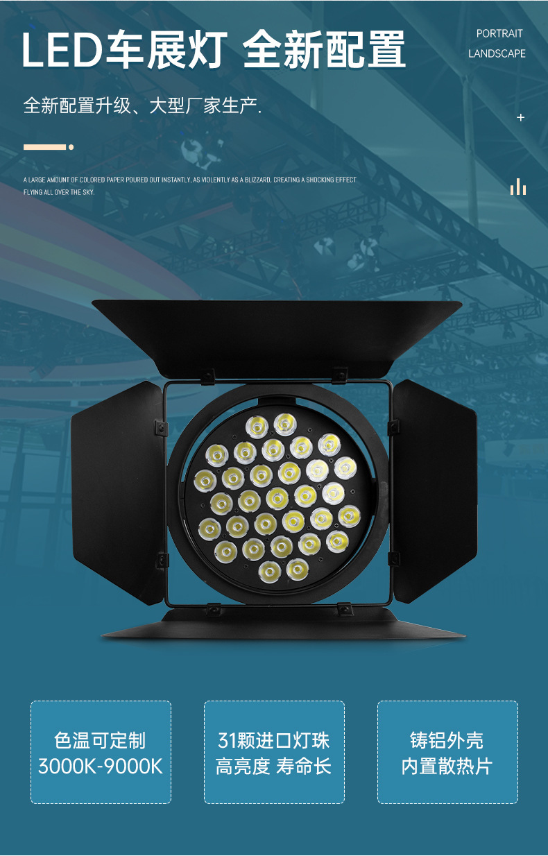 LED exposición Spotlight 70W/100W pantalla proyector de cuatro hojas Auto Show lámpara de cañón Auto Show etapa Spotlight