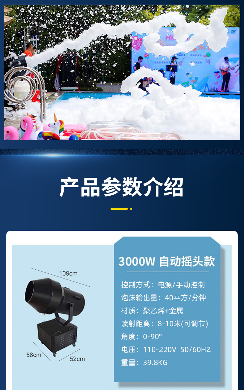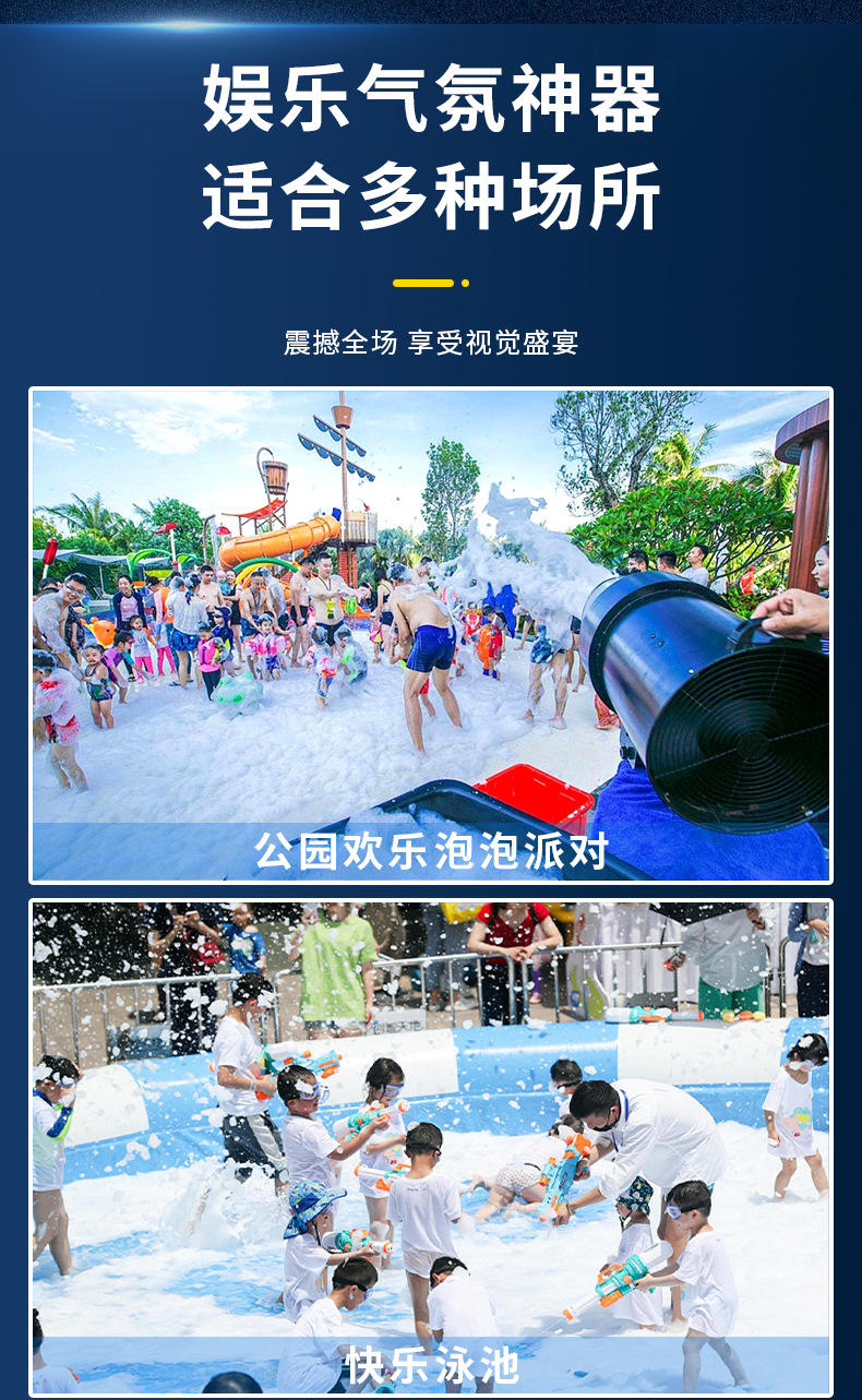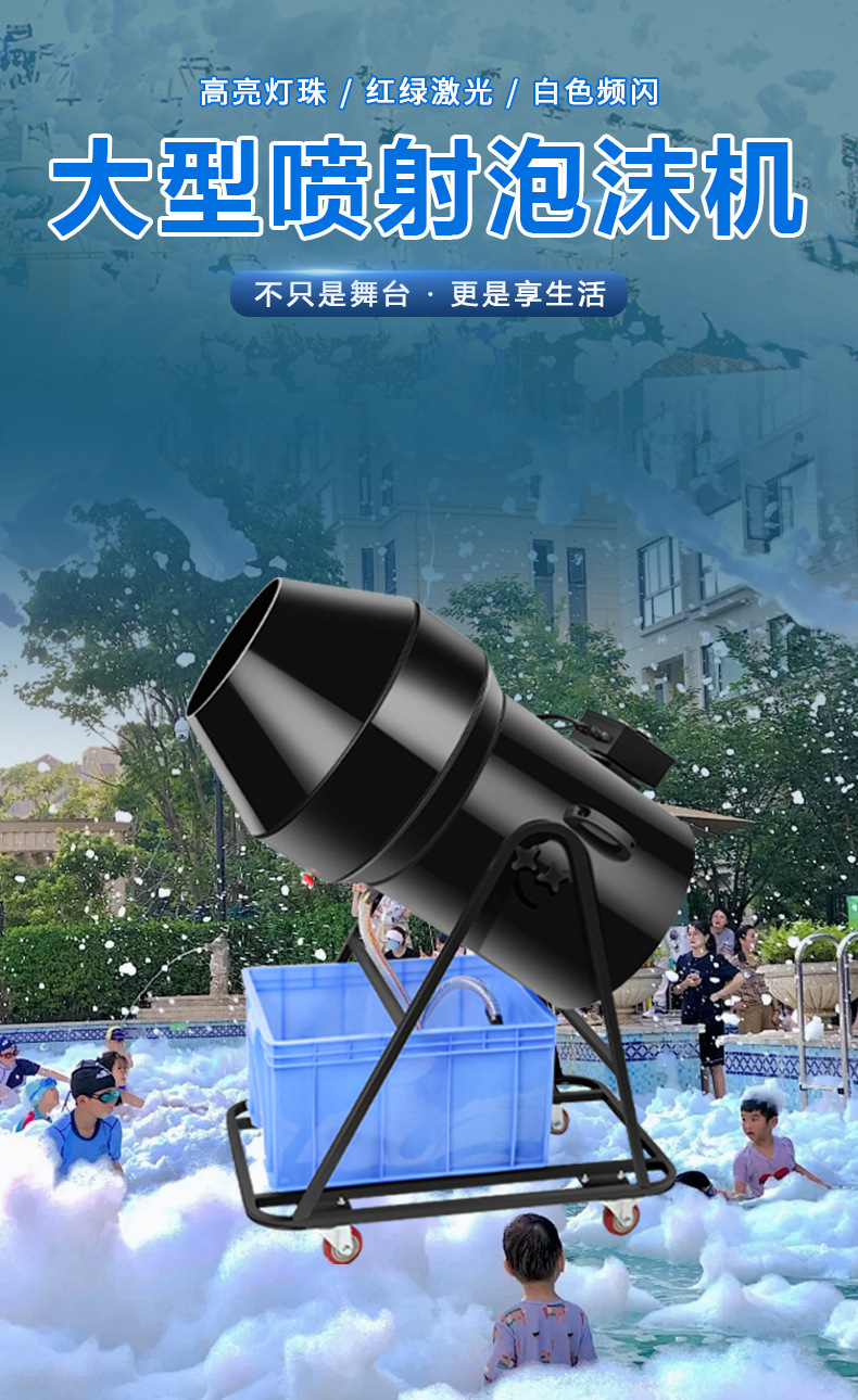 Máquina de espuma para parque acuático para jardín de infantes gran chorro agitando la cabeza para actividades de escenario piscina fiesta máquina de espuma
