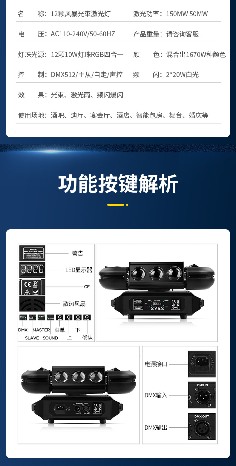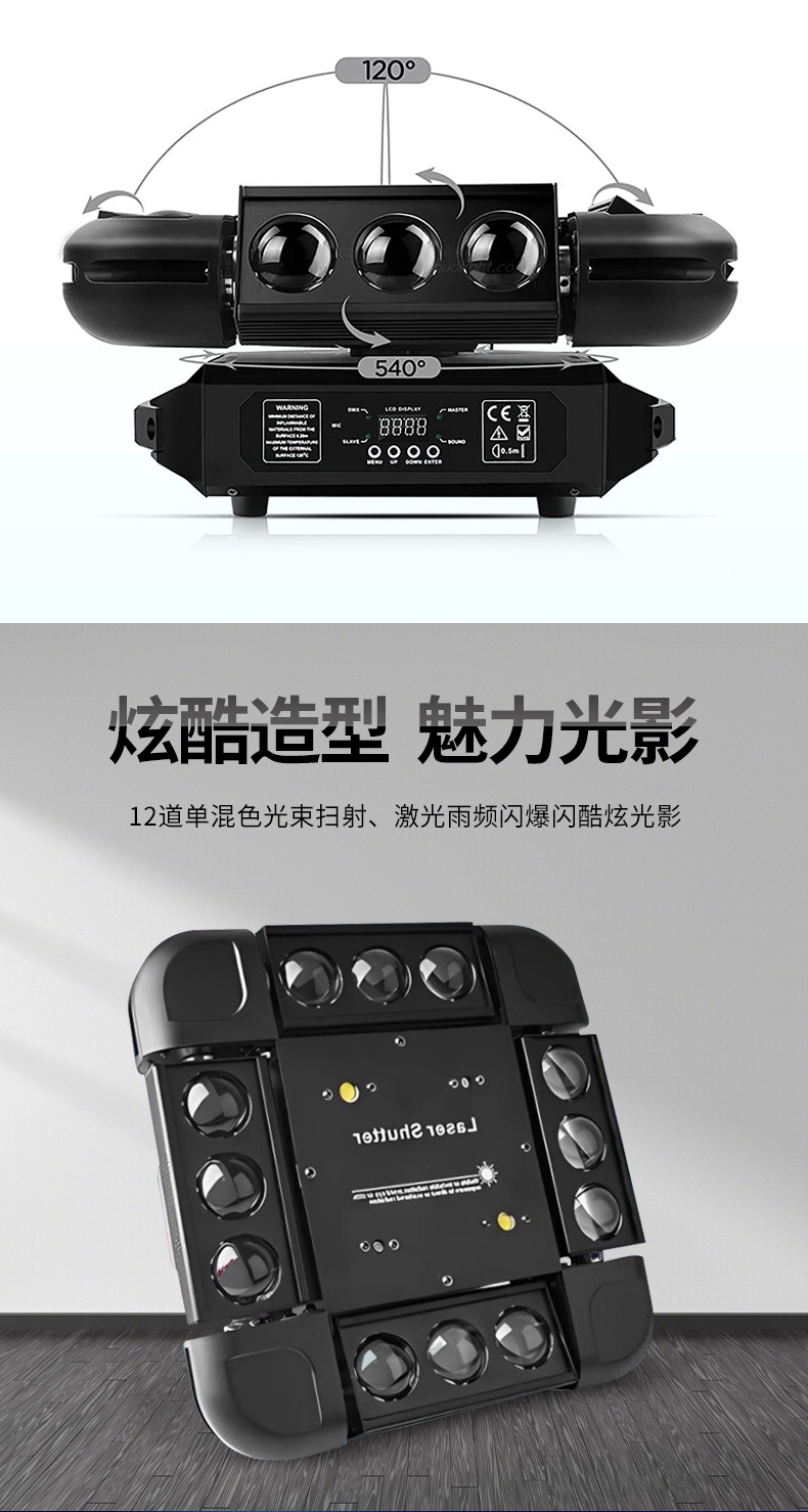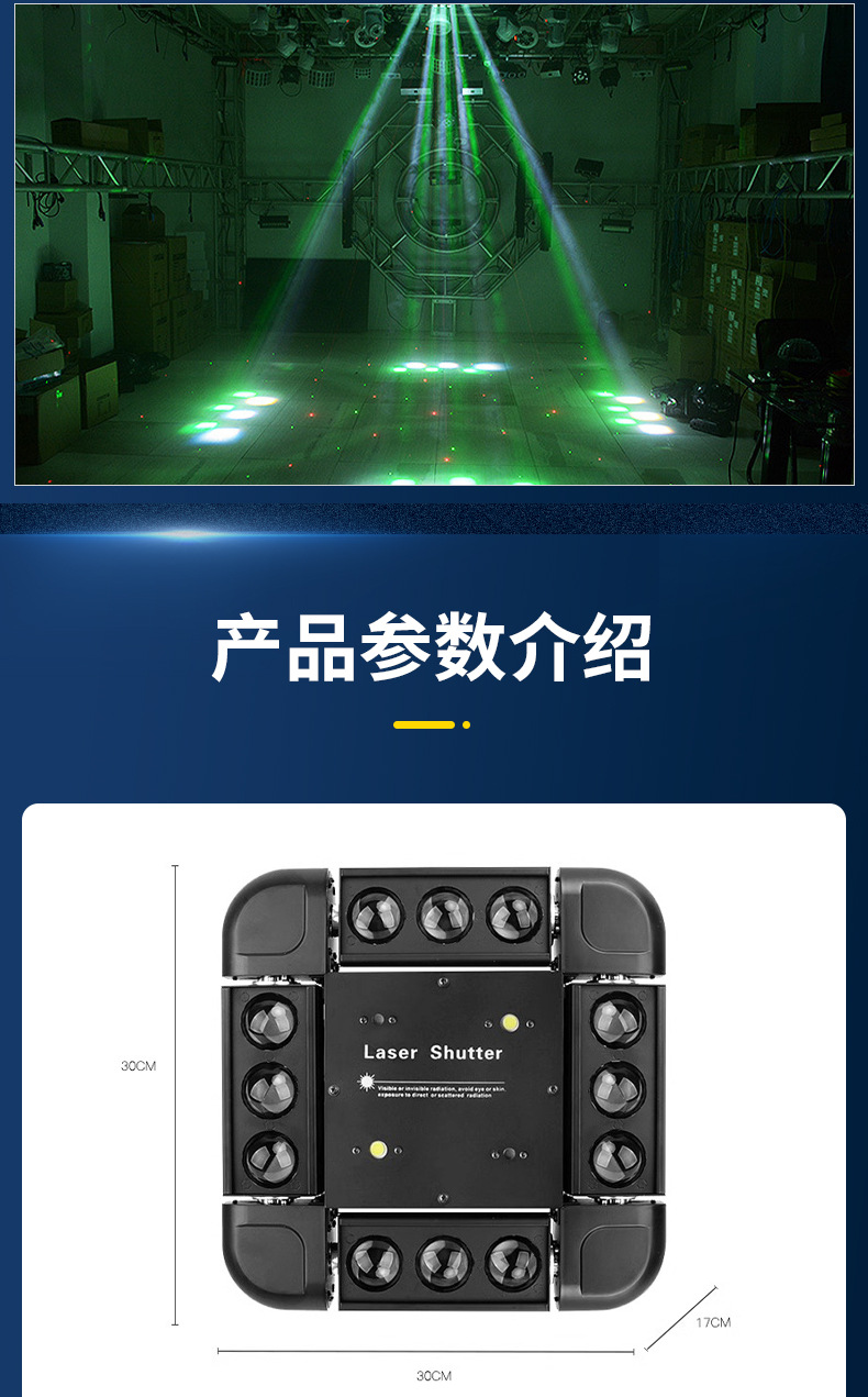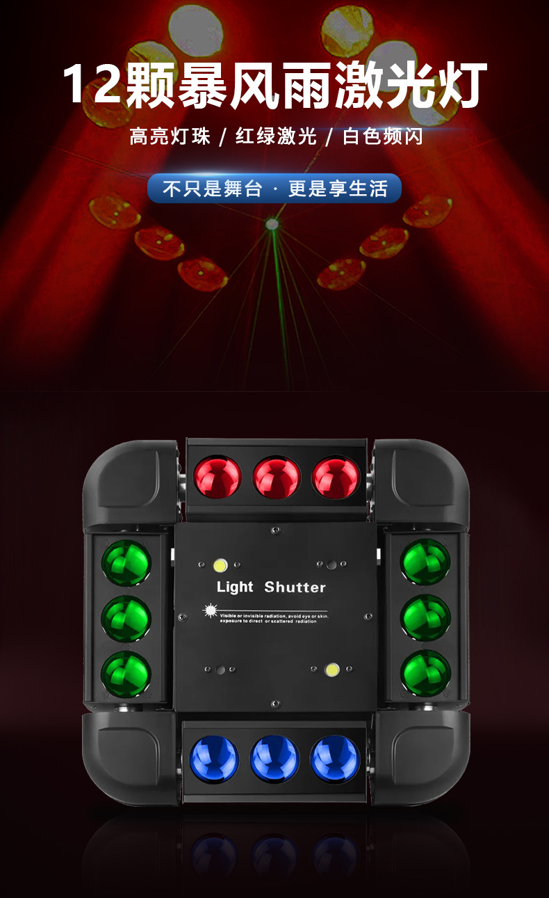 Luz del escenario 12 tormenta luz láser 3 - en - 1 barra de espectáculo láser luz giratoria KTV flash