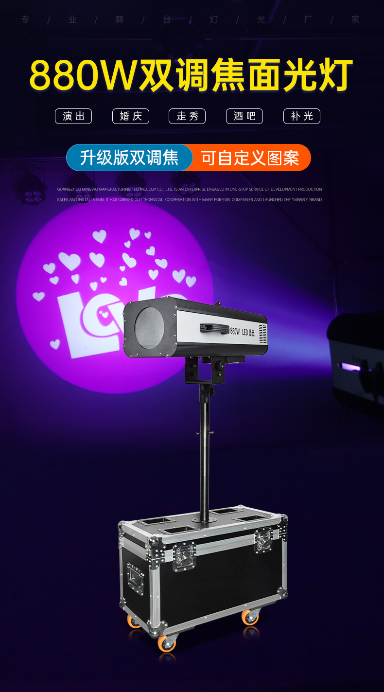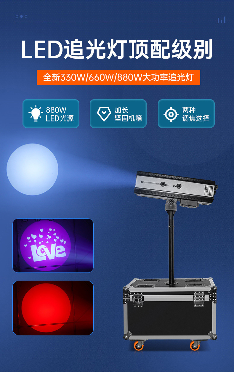Proyector LED 880W luz boda rendimiento etapa lámpara luz Equipo conjunto completo doble enfoque 330W660W proyector