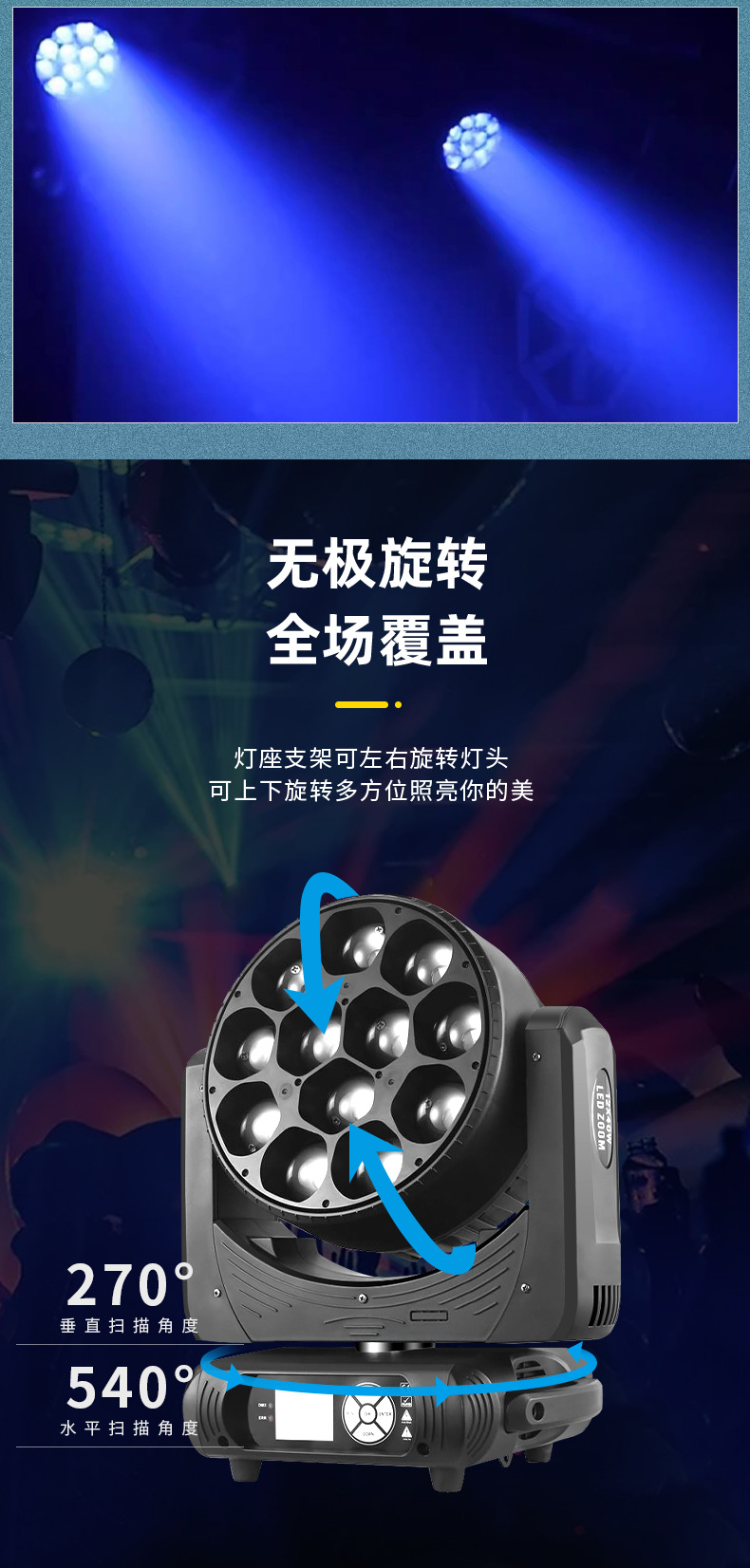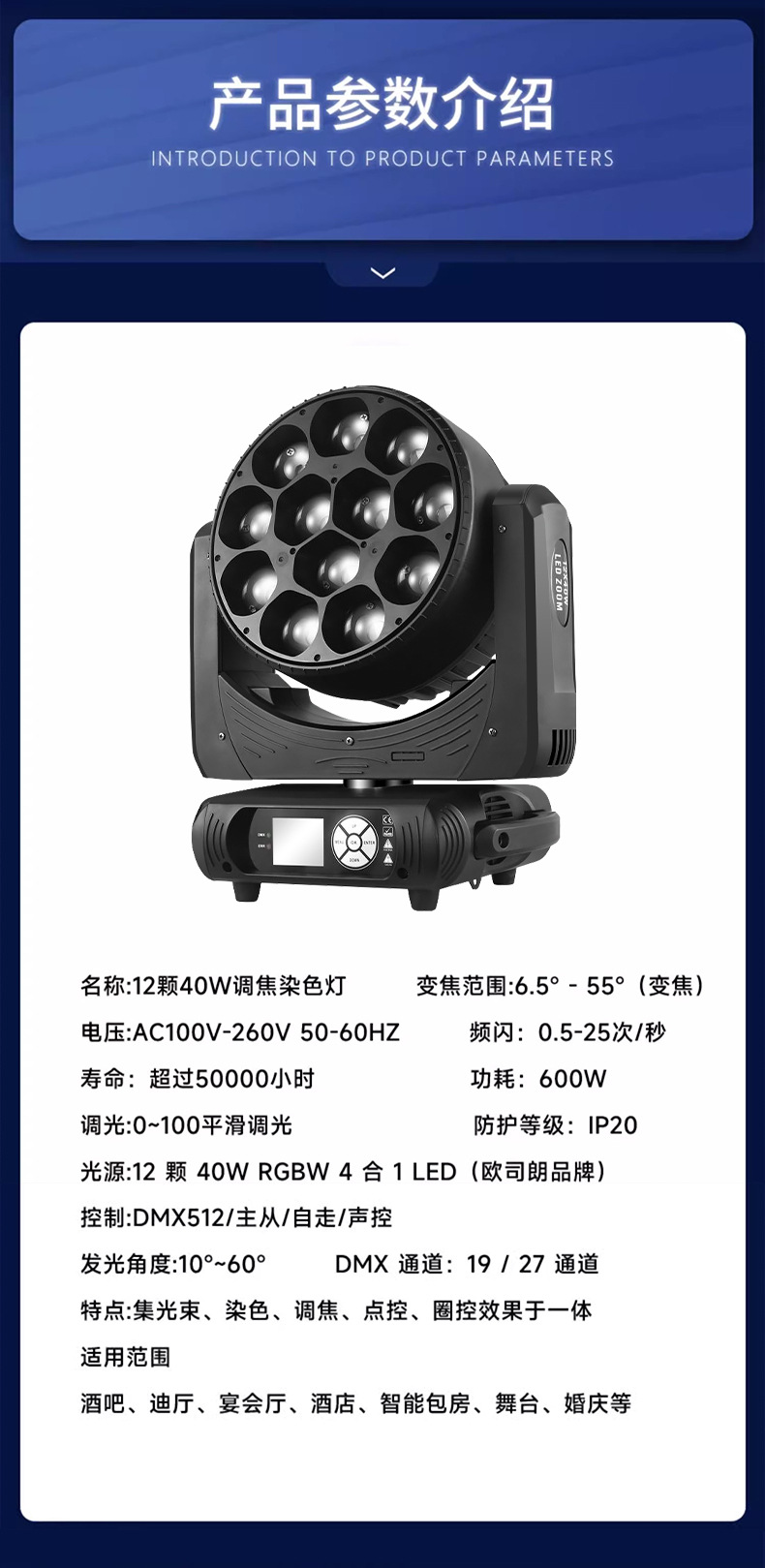 12 luces de escenario 40W zoom LED color sacude la cabeza escenario bar espectáculo atmósfera lámpara de teñido