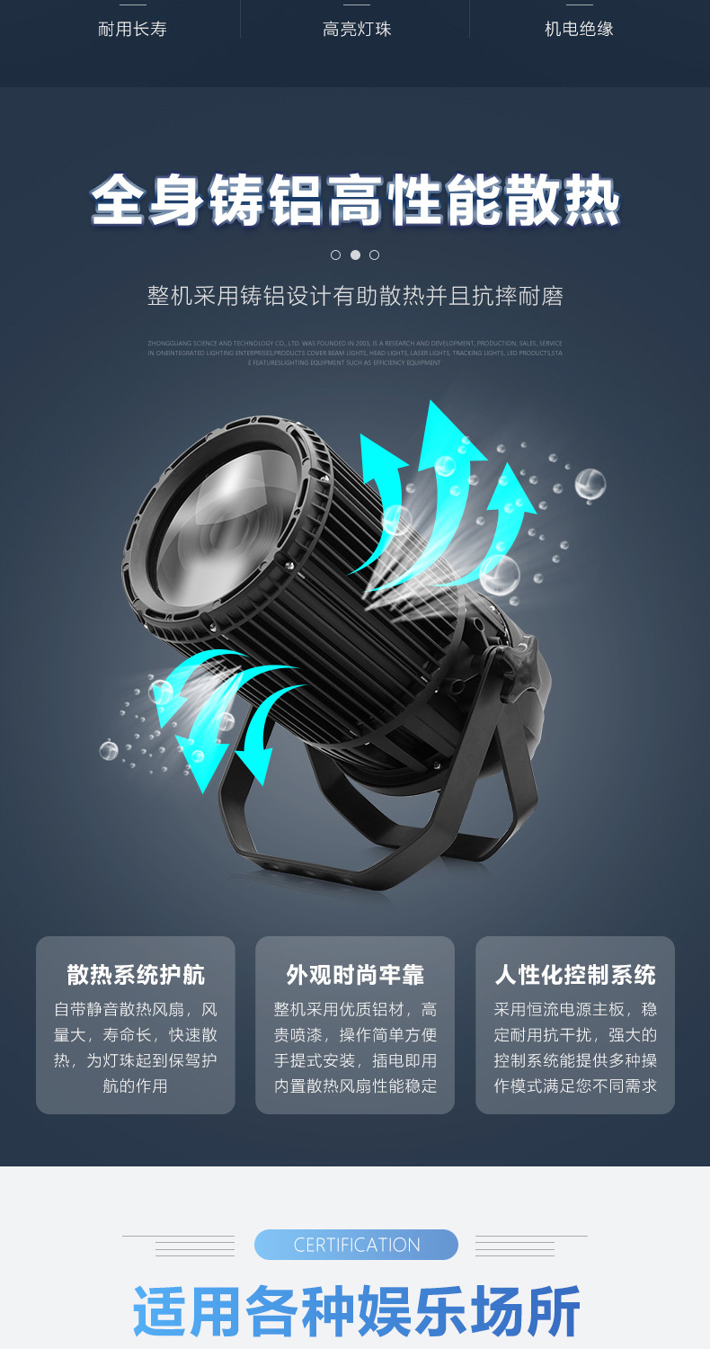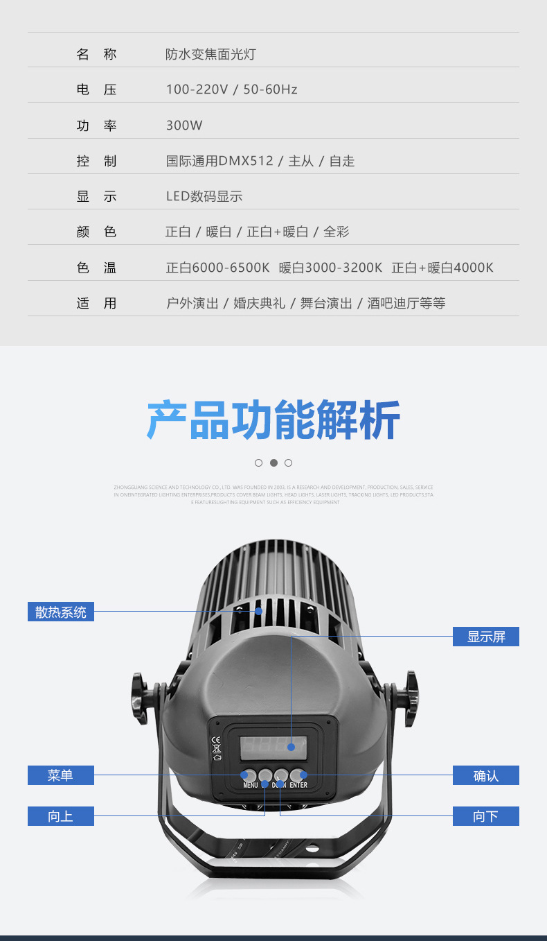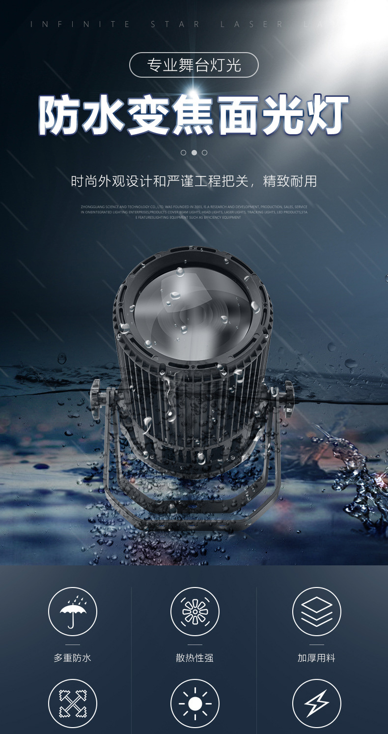 Al aire libre impermeable 300w foco iluminación superficial iluminación al aire libre escenario espectáculo parque escénico cob zoom luz de enfoque