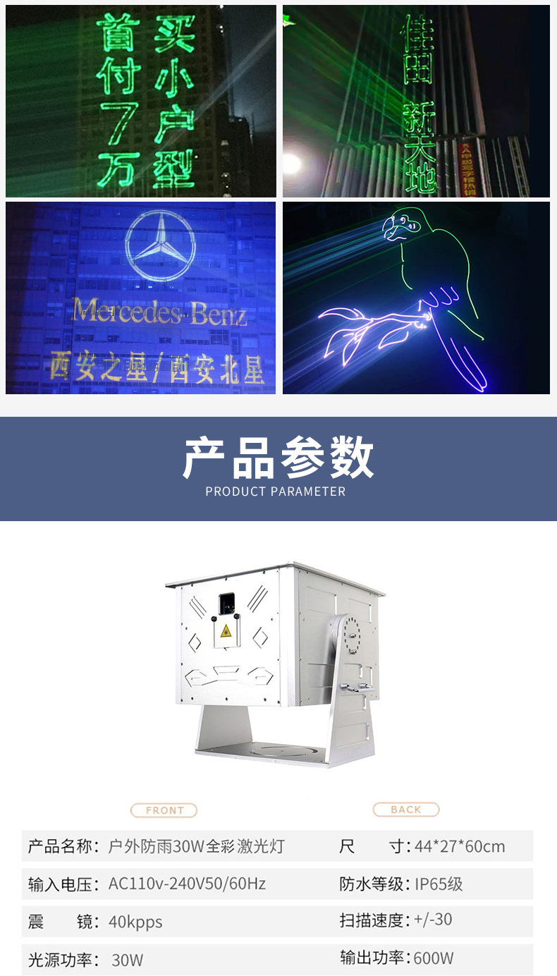 Al Aire Libre 20W 30W a prueba de agua a todo color fuente de luz láser techo mecanografía punto escénico láser Luz láser espacio-tiempo túnel