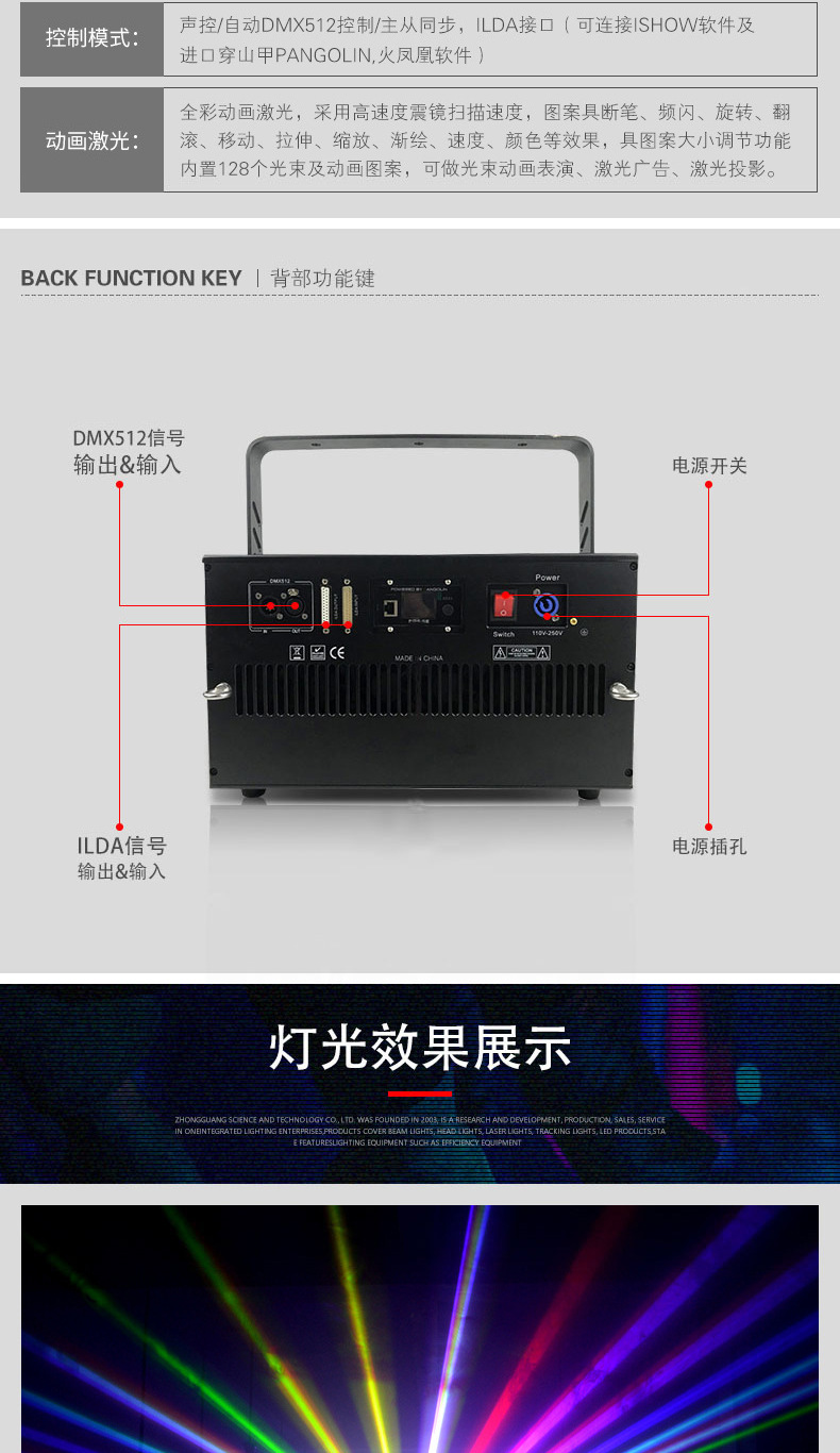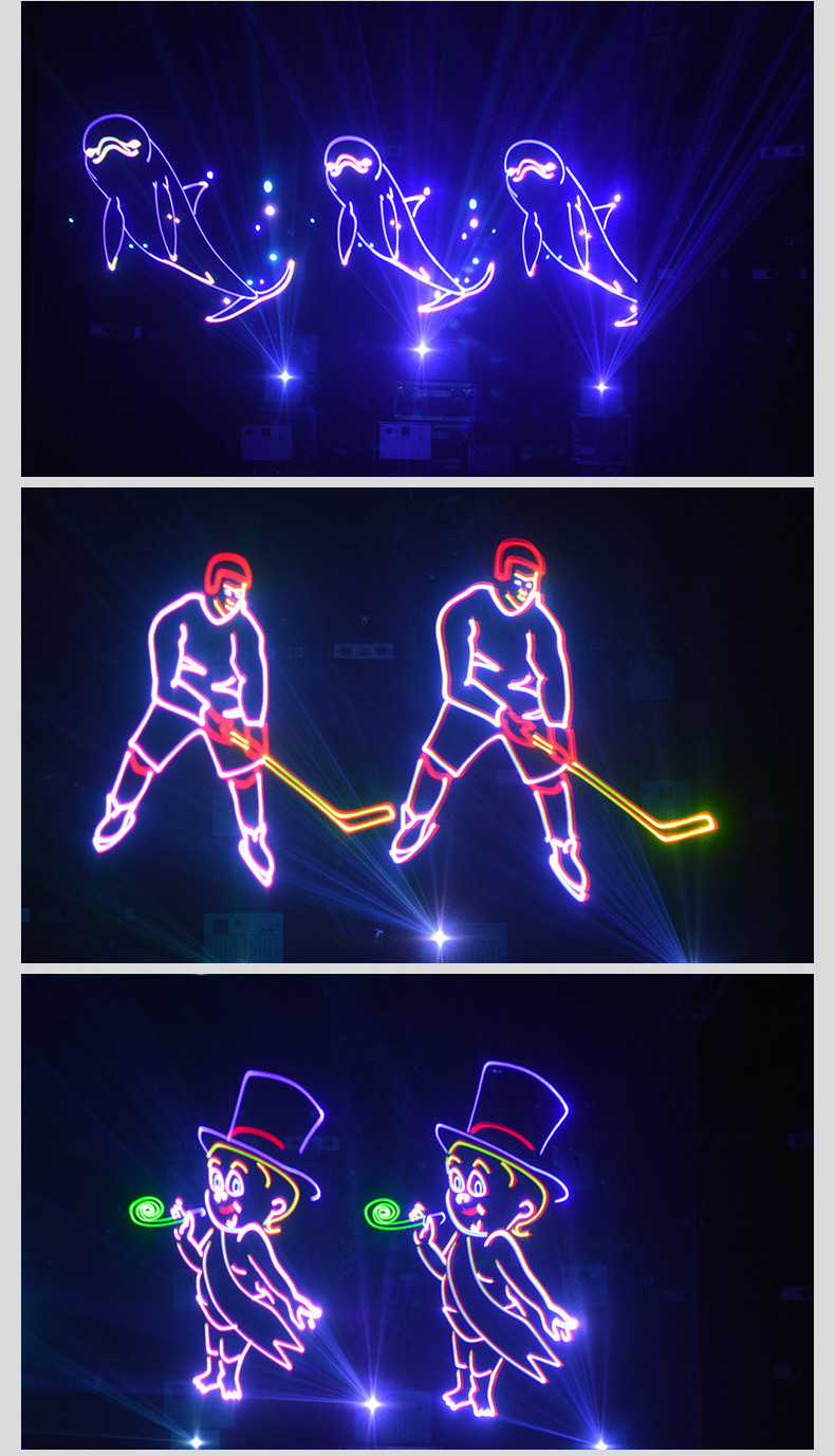 Luz láser animada a todo color para exteriores, de alta potencia, para publicidad en edificios, bares, escenarios, con patrones de luz.